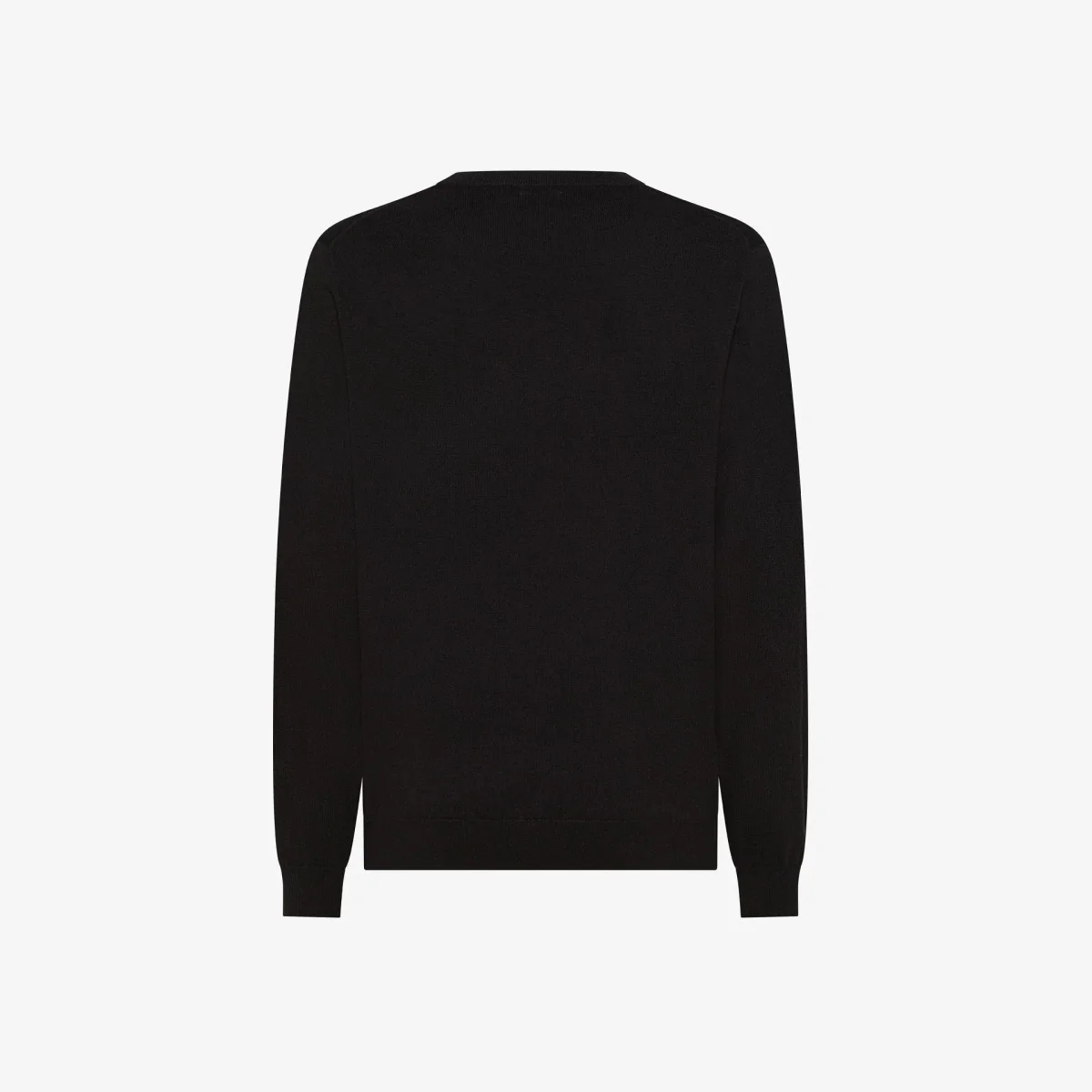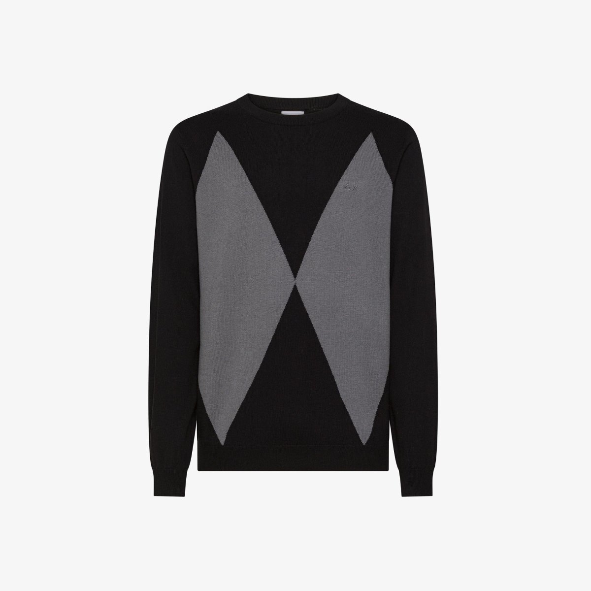 Maglione in lana a rombi, in filato di lana e cotone, girocollo, maniche lunghe, bordi a costine, logo ricamato, colore nero