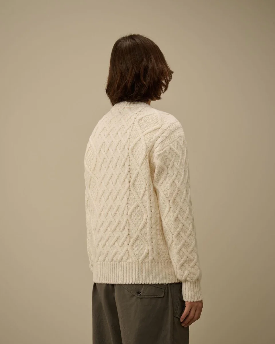 Maglione girocollo realizzato in morbida lana shetland, polsi e orlo a costine, finezza 3, regular fit, colore bianco