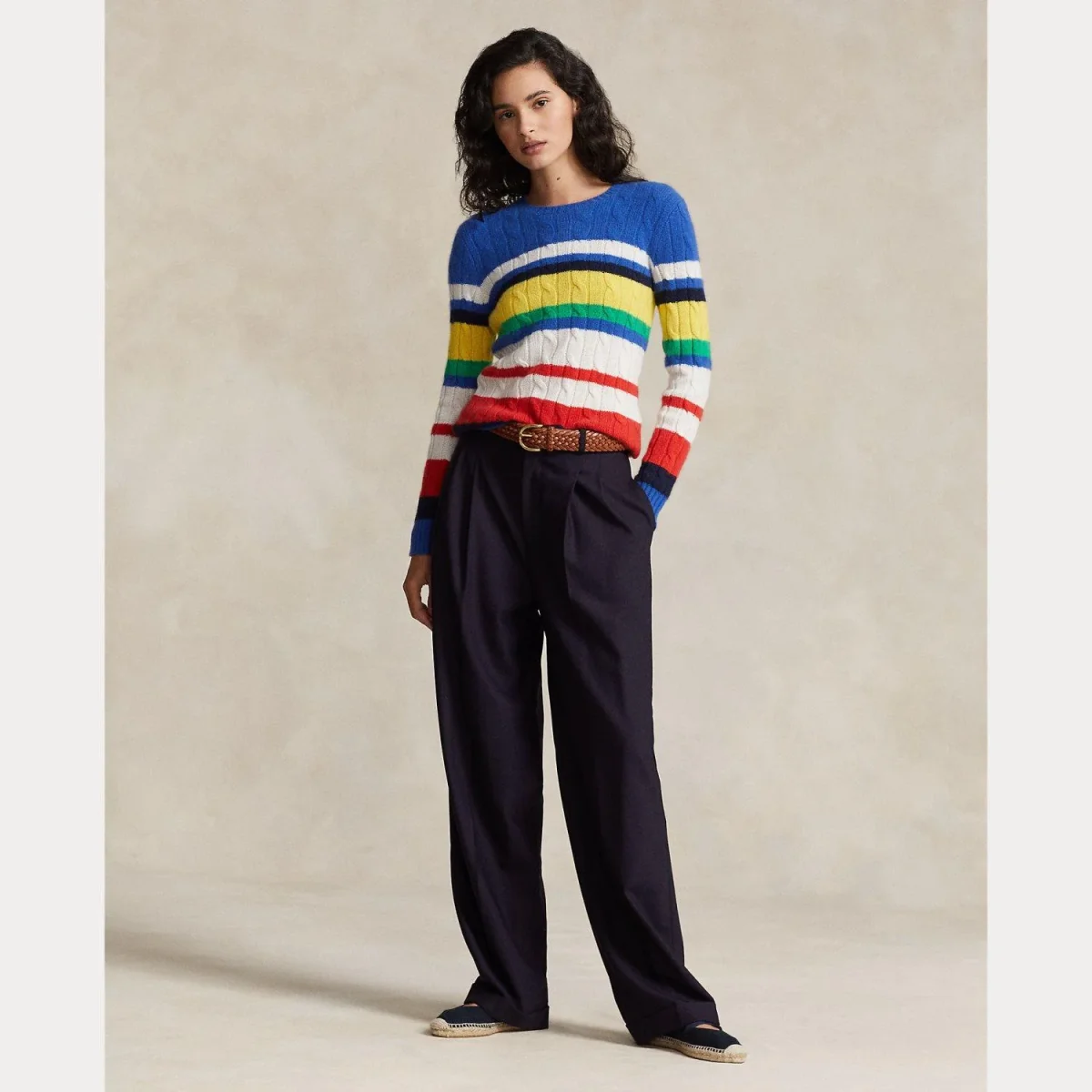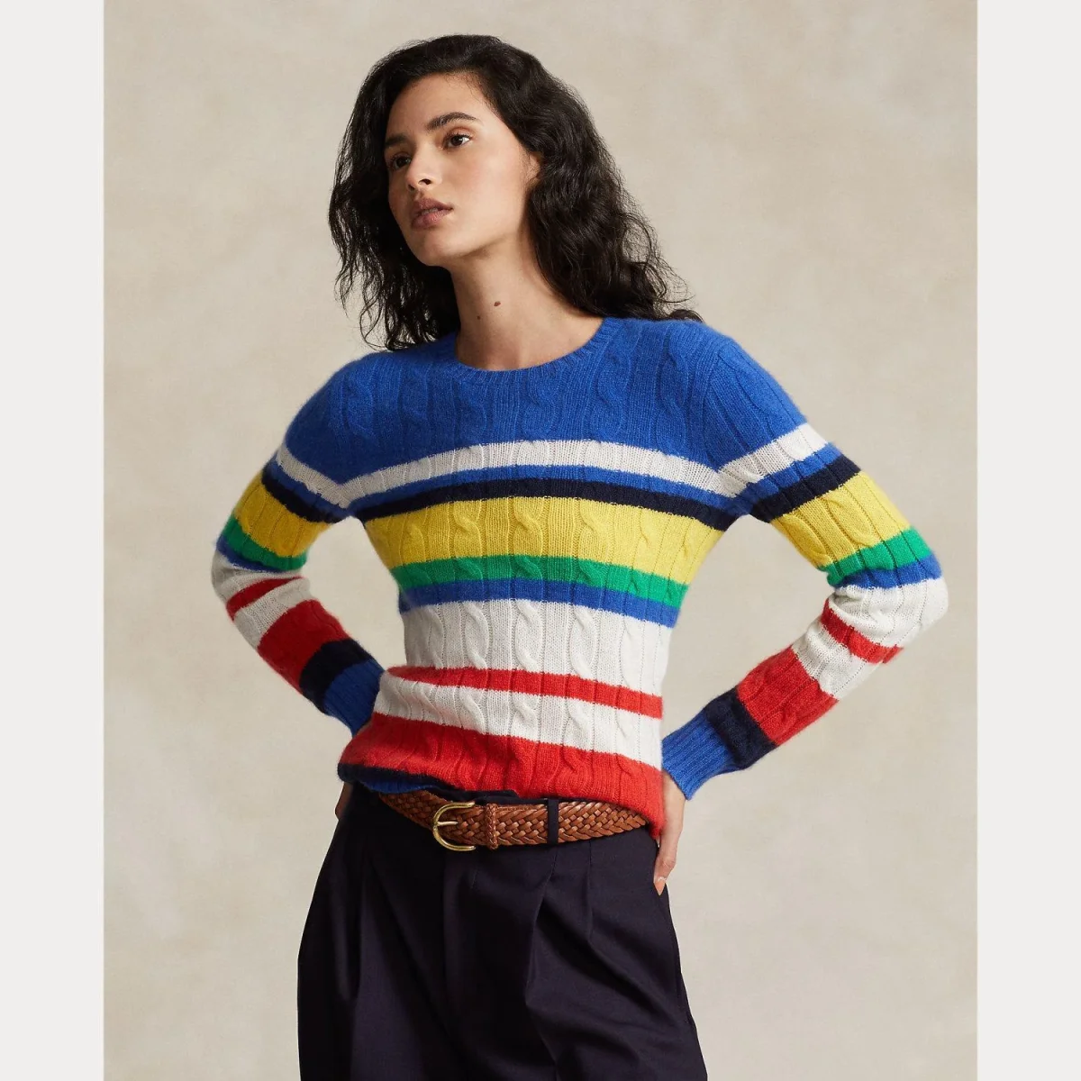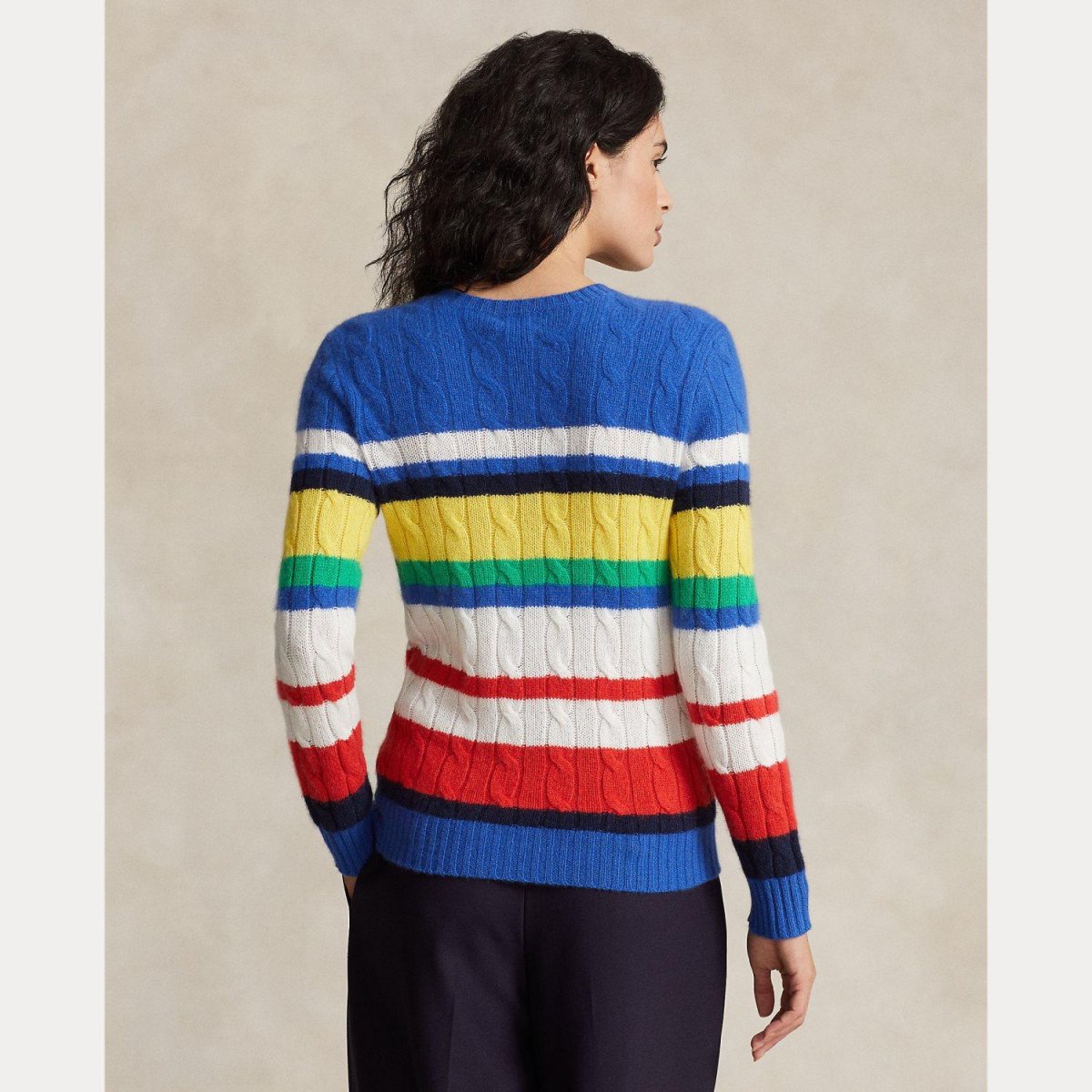 Maglione multicolor Ralph Lauren donna, modello in cashmere, girocollo e maniche lunghe con dettaglio fantasia in contrasto