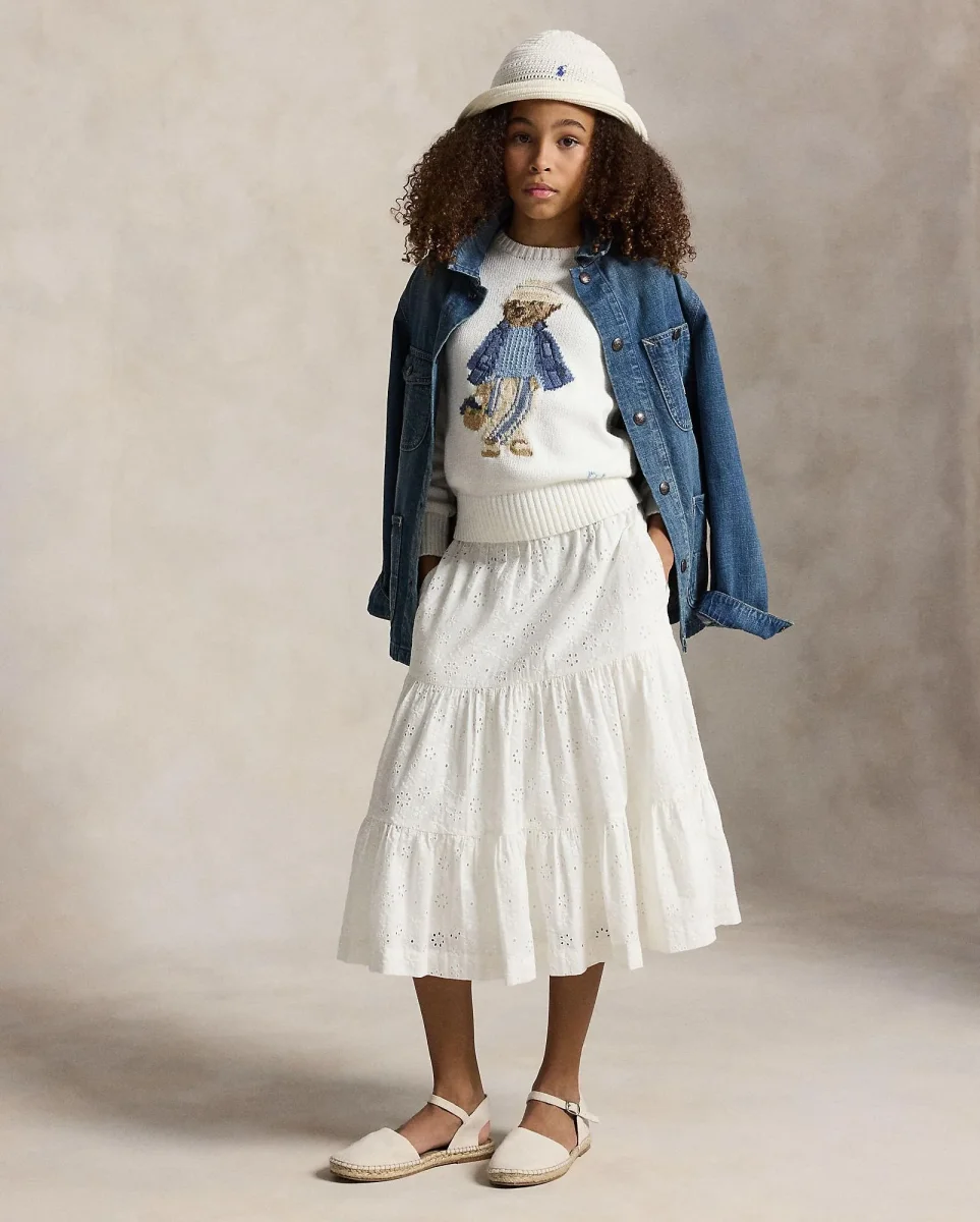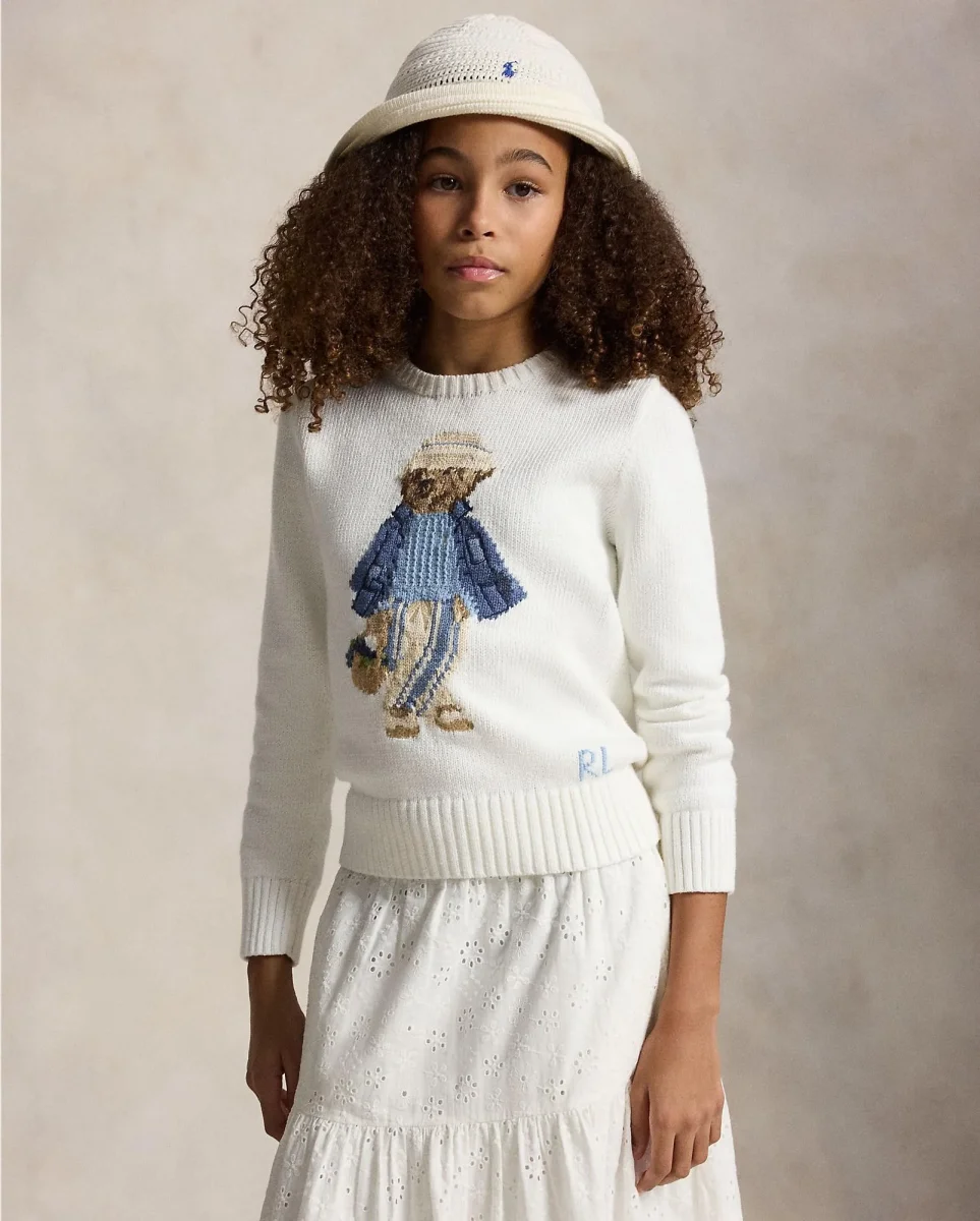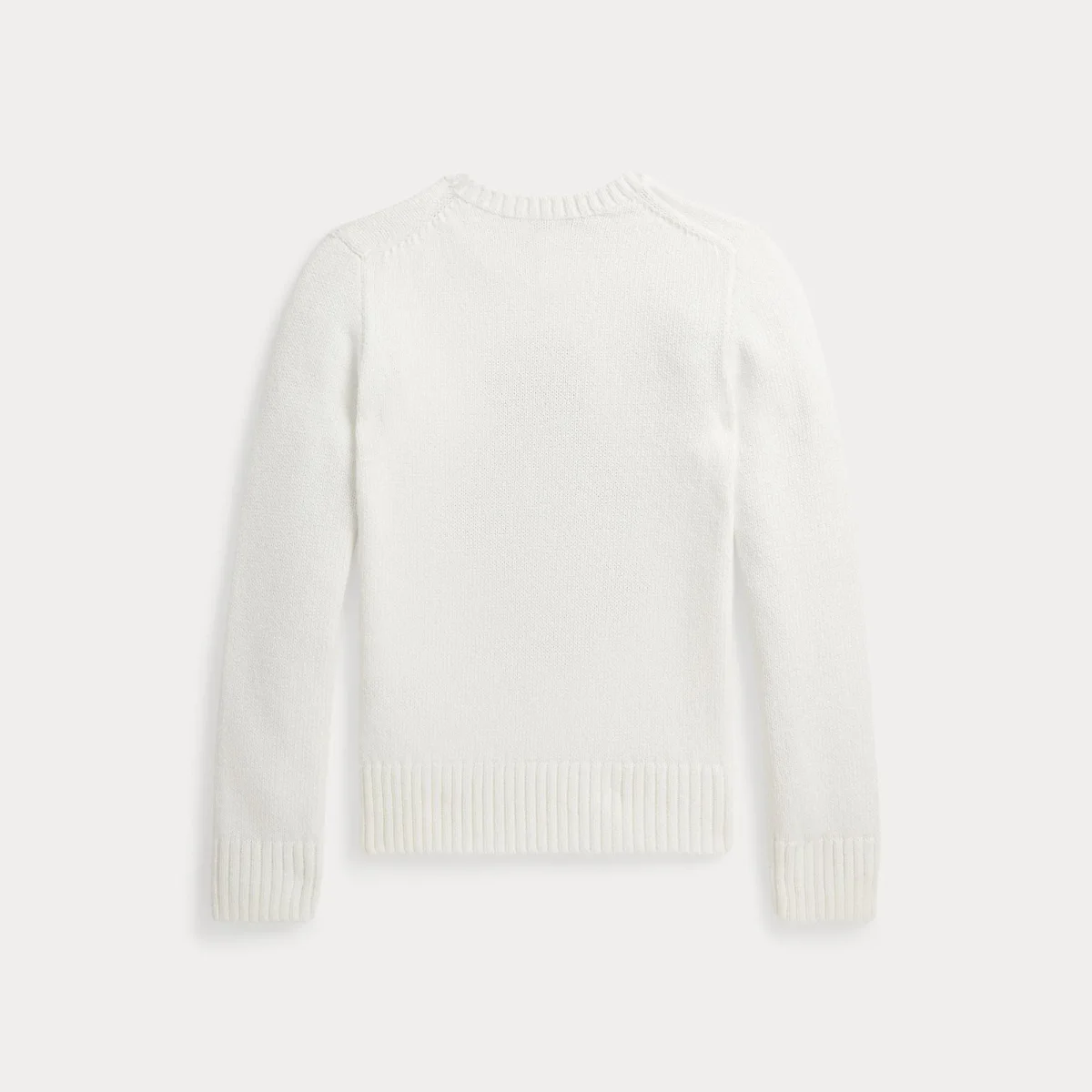 Maglione in cotone Polo Ralph Lauren, modello girocollo e maniche lunghe, logo iconico al fondo ricamato e Polo Bear iconico in contrasto