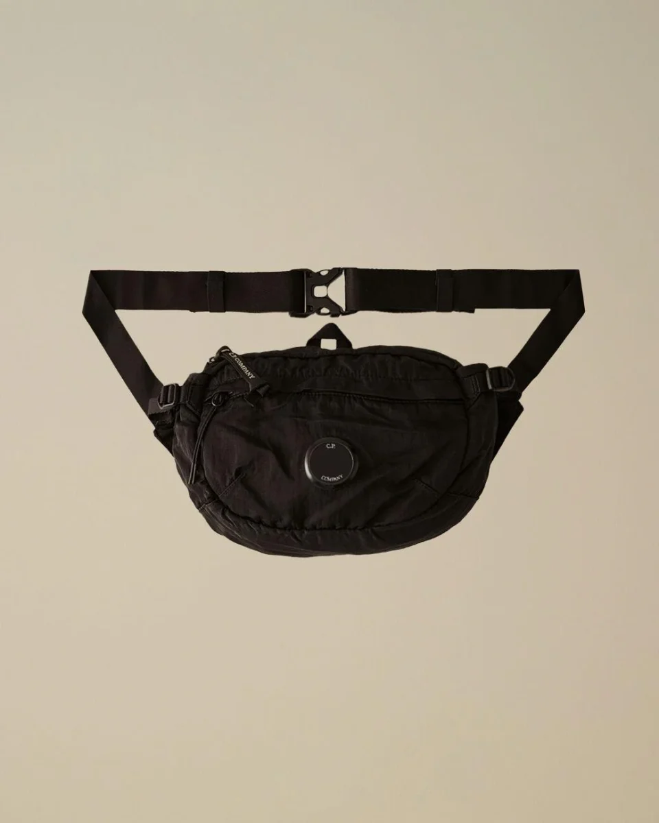 Marsupio in pelle Piquadro, modello linea B2, scompartimento interno con chiusura zip, perfilino in contrasto blu, tasca porta cellulare, colore nero