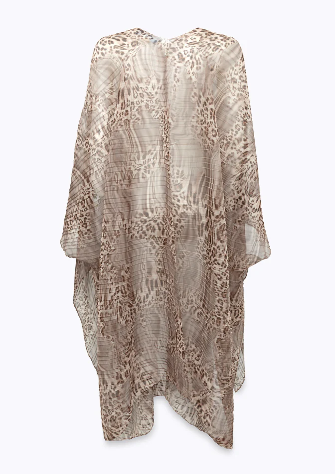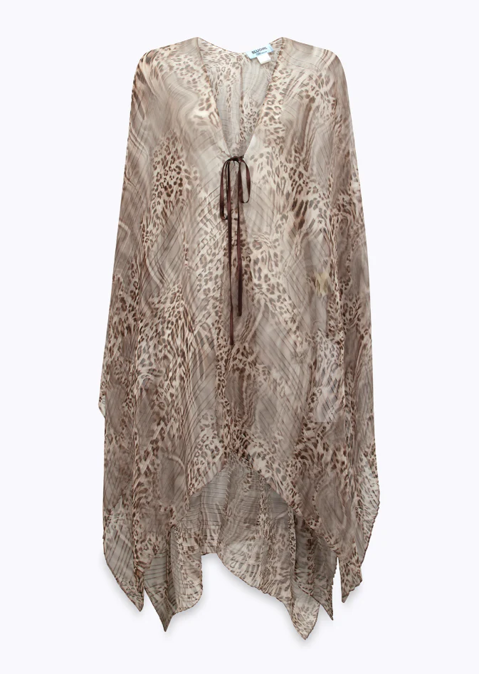 Maxi poncho Blugirl donna, modello in tulle plissè da annodare con laccetti sul davanti, color animalier