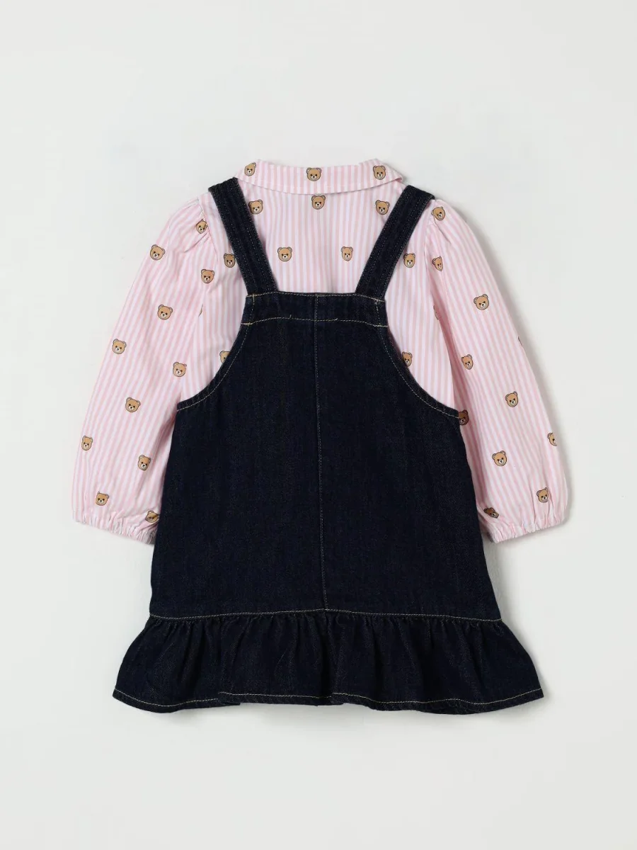 Completo camicia e salopette Moschino Kids, modello con collo, maniche lunghe, chiusura bottoni e tasche a toppa