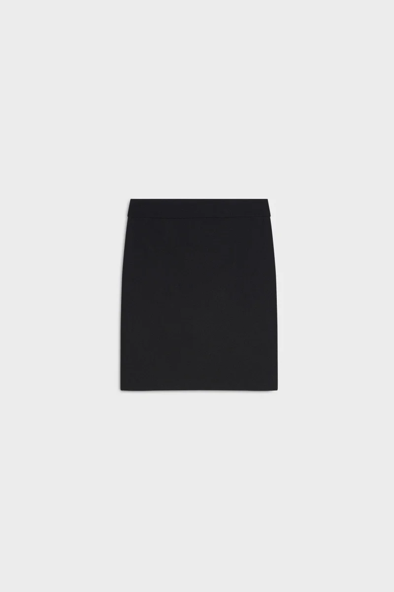 Mini gonna sfoderata in gabardina elasticizzata con vita regolare, chiusura lampo nel centro dietro, lunghezza sopra il ginocchio, colore nero