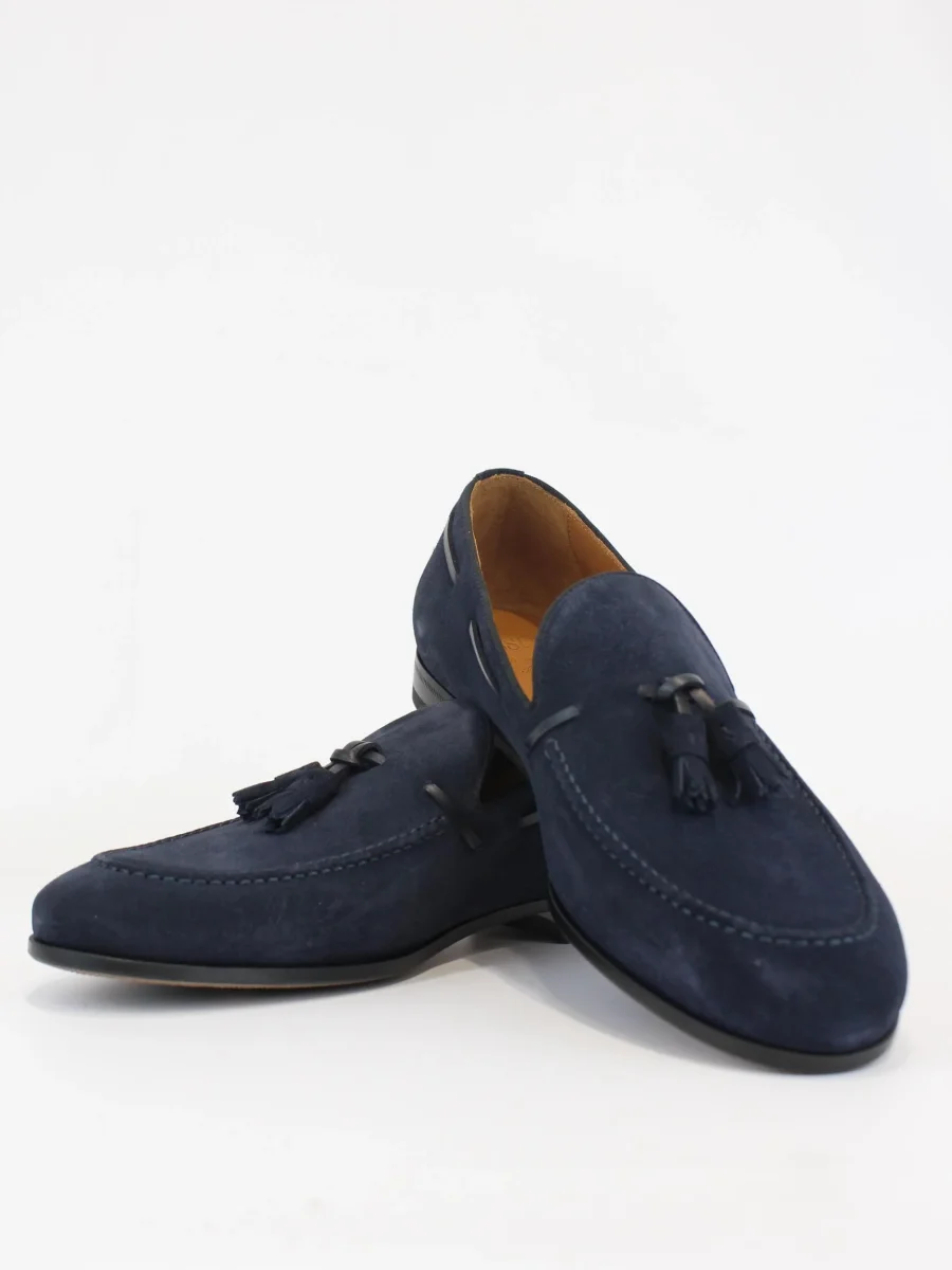 Mocassino in pelle Florence Blu Rossi, modello tinta unita con dettaglio impunture a vista, dettaglio nappine sul fronte, sottopiede in pelle, tacco 2 cm. Calzata regolare, colore blu