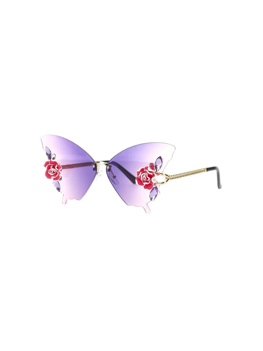 Occhiali a forma di farfalla Monnalisa, dettagli floreali in rilievo con eleganti rose, custodia abbinata