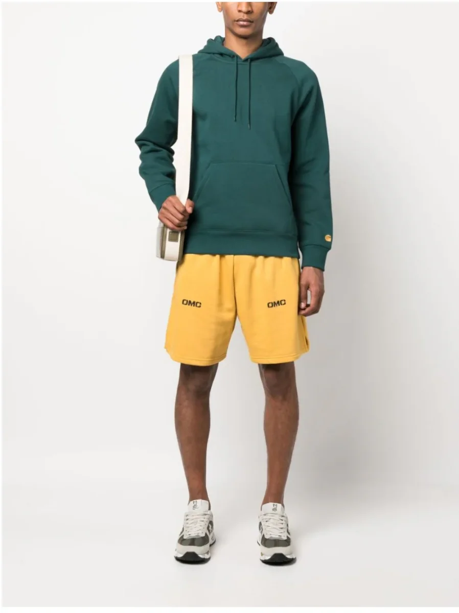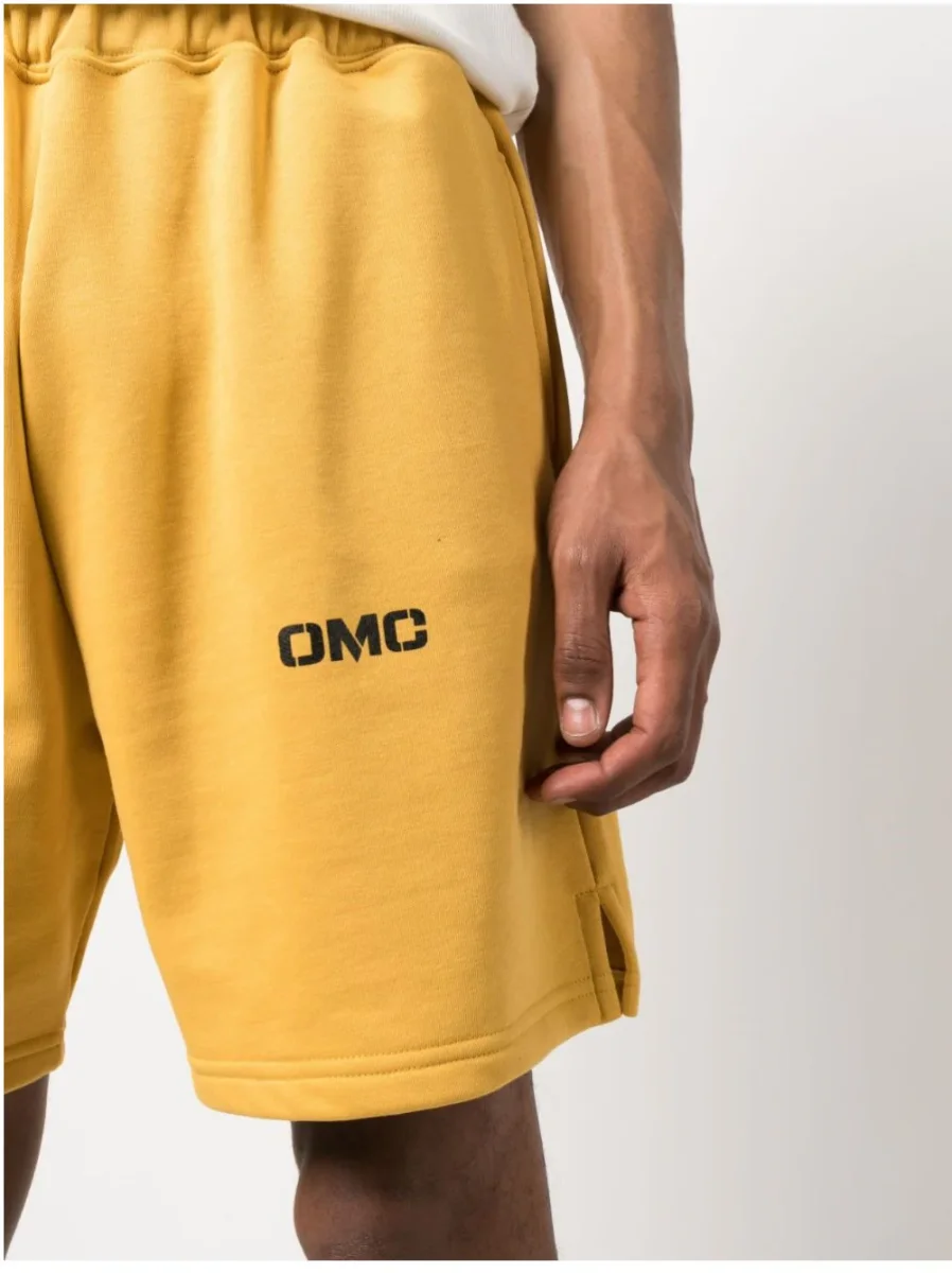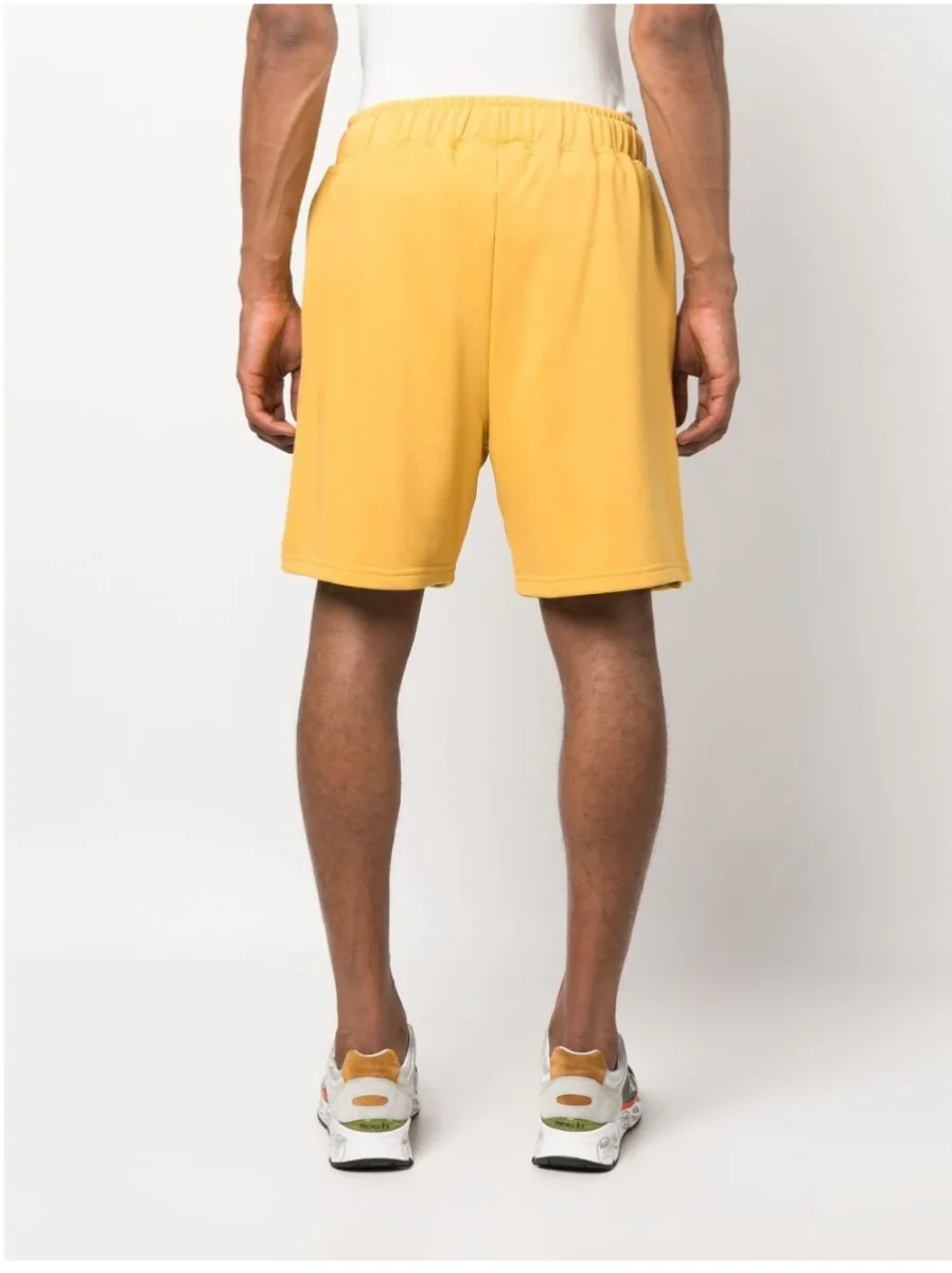 ochre yellow cotton blend jersey knit logo print to the front mid-rise straight leg elasticated waistband two side inset pockets short side slits When buying this unisex item, keep in mind that it is graded in standard men’s sizing.