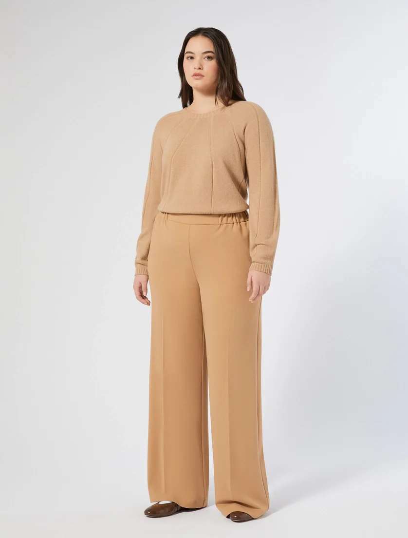 Pantalone linea a palazzo Marina Rinaldi, elastico in vita sul retro, tasche alla francese ai fianchi, piega stirata, colore cammello