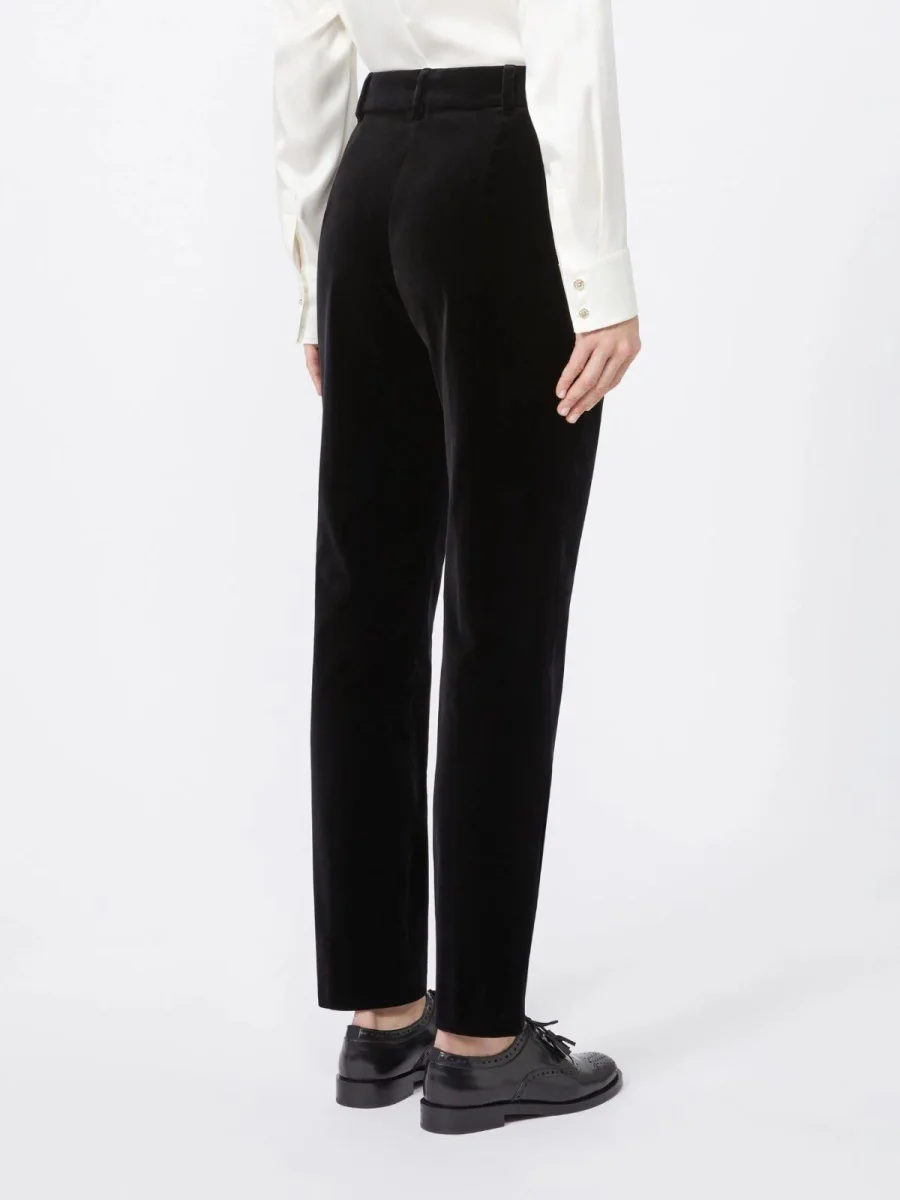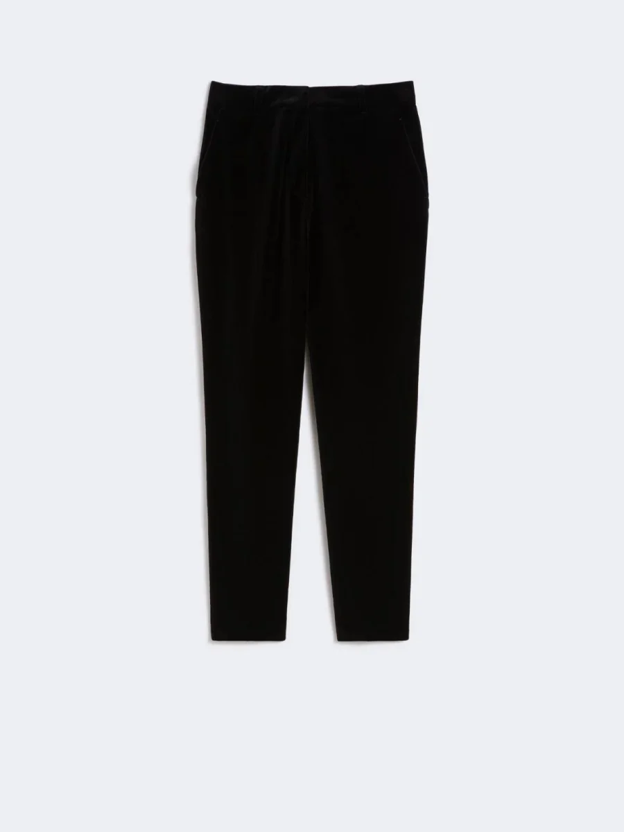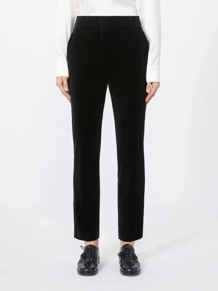 Pantalone a sigaretta Max Mara Studio, vestibilità aderente, vita regolare con passanti per cintura, chiusura con listino alto, zip con patta e gancetto, colore nero