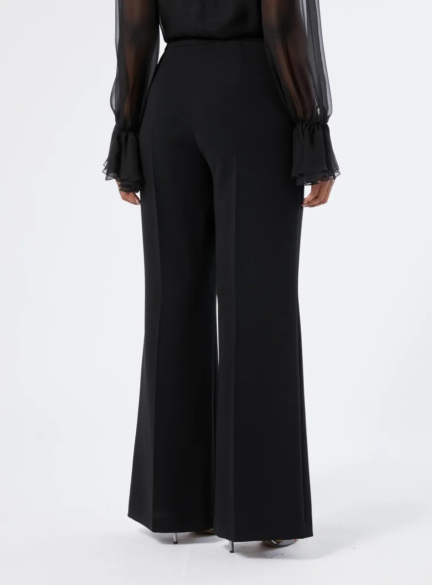 Pantalone linea flare Marina Rinaldi, chiusura con zip e bottone ricoperto, tasche alla francese, piega stirata davanti e dietro, colore nero