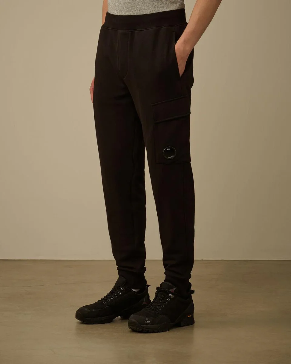 Pantalone con vita regolabile con coulisse, tasche laterali, tasche cargo con lente, fondo gamba a costine, regular fit, colore nero