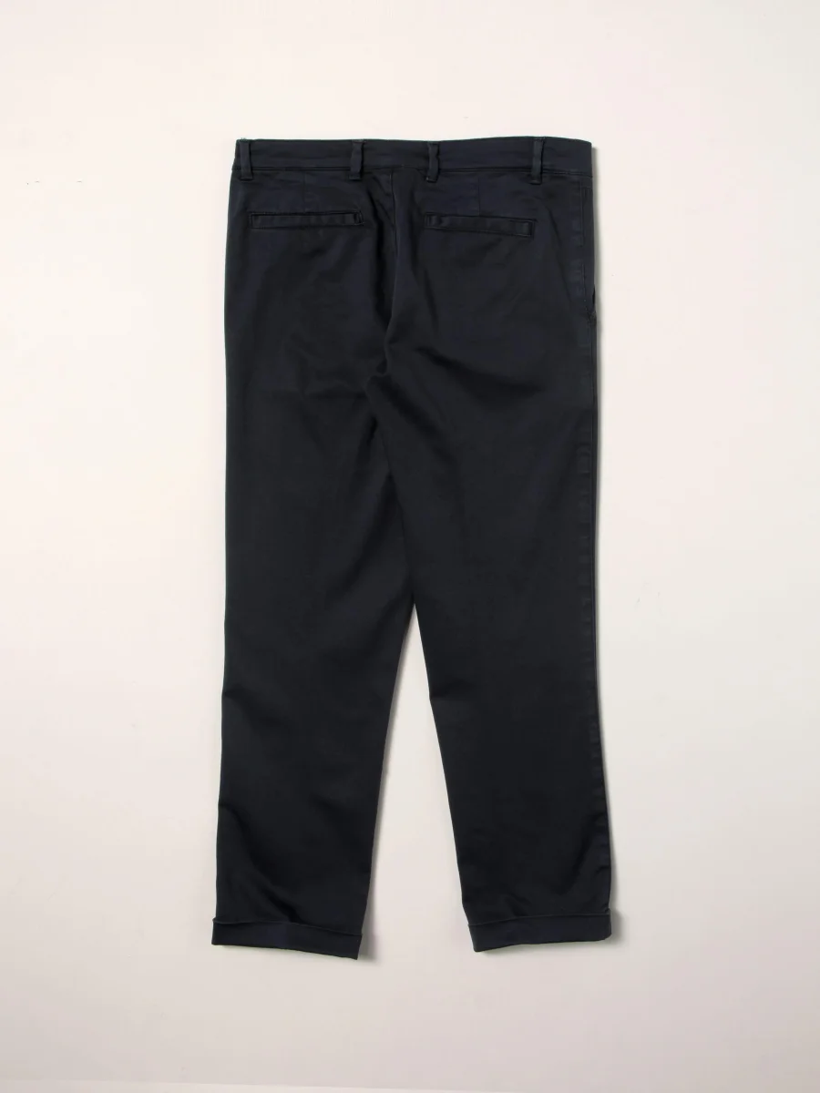 Pantalone in popeline di cotone strech Fay, chiusura centrale con bottone, passanti per cintura, tasche america laterali e a filetto dietro. Colore blu