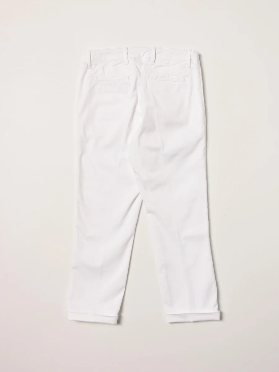 Pantalone in popeline di cotone strech Fay, chiusura centrale con bottone, passanti per cintura, tasche america laterali e a filetto dietro. Colore bianco