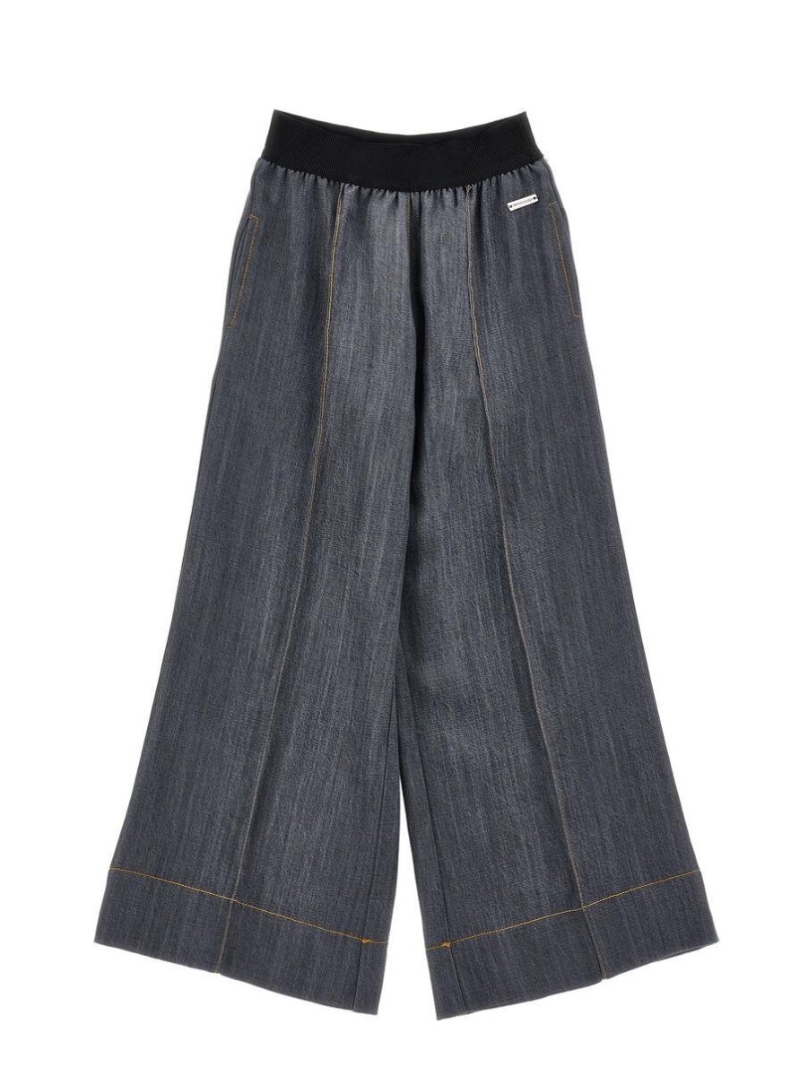 Pantalone Monnalisa, modello in denim con elastico in vita, dettagli cuciture in contrasto, colore grigio
