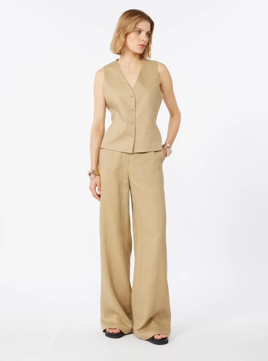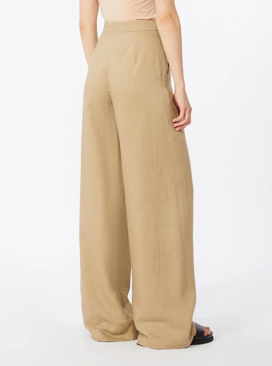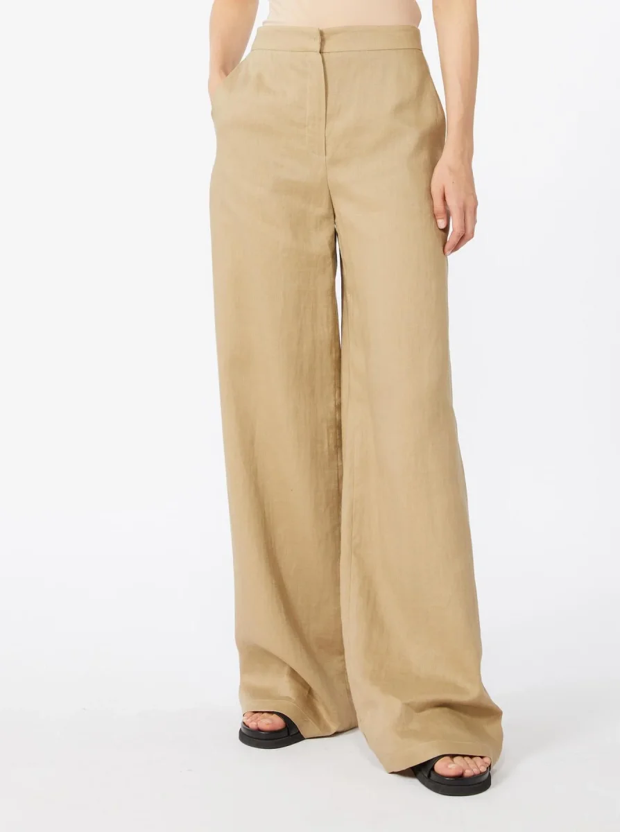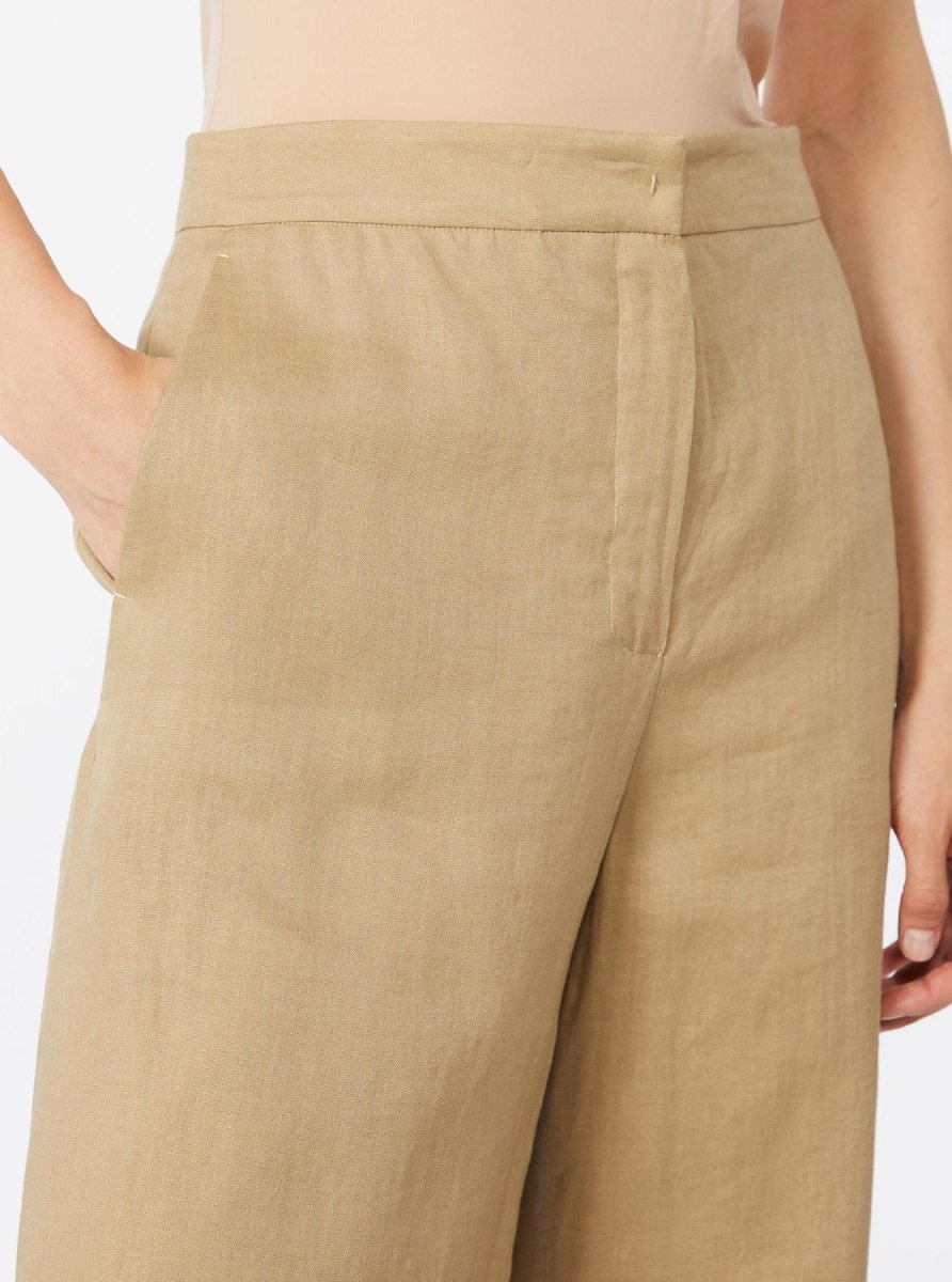 Pantalone in lino Max Mara Studio, modello in tela di lino, vita regolare, chiusura con listino alto in vita, zip con patta e gancetto, tasche alla francese, pinces cucite in vita, colore corda