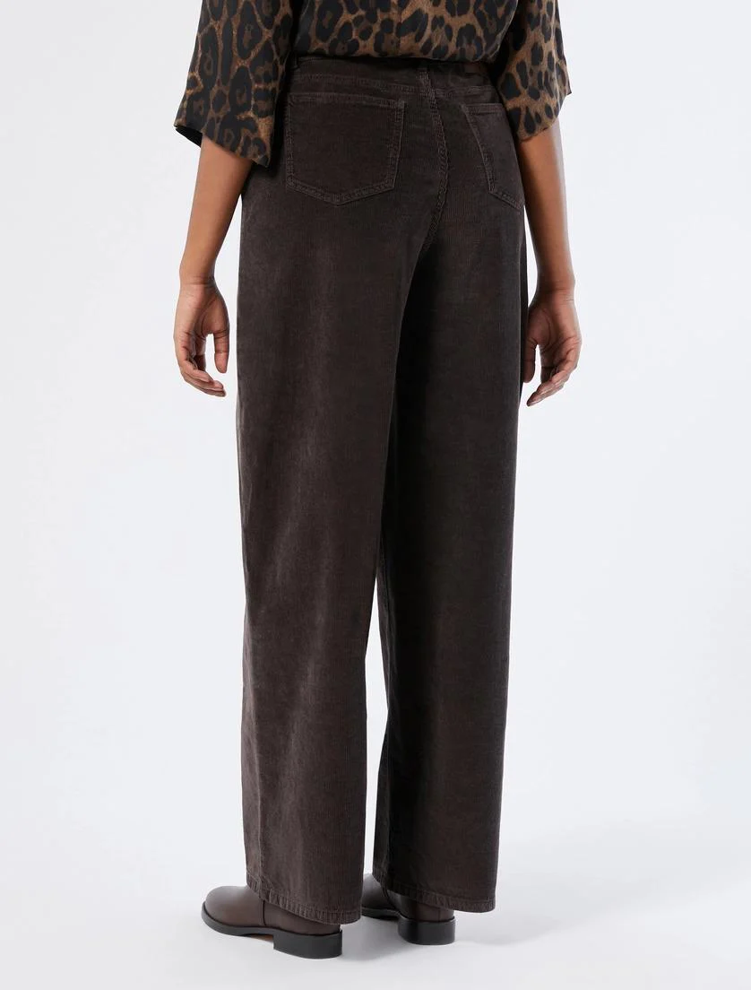 Pantalone Marina Sport in velluto stretch a righe, modello wide leg, passanti in vita e chiusura con zip e bottone, cinque tasche, colore marrone