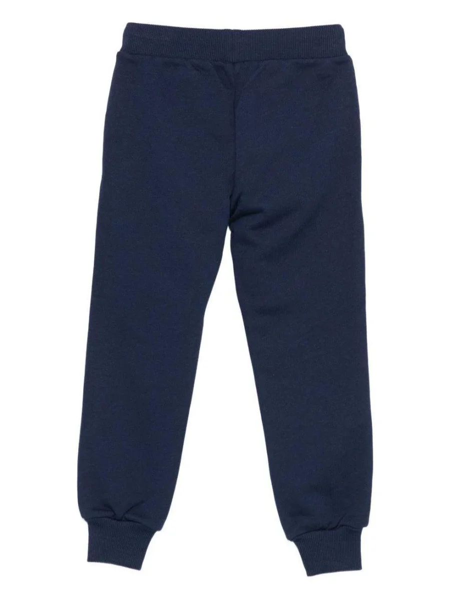 Pantalone Moschino Kids, modello elasticizzato in vita, polsini alle caviglie, colore blu