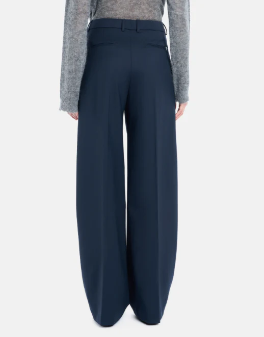 Pantalone Lia Dondup, modello wide leg chino con pinces sul davanti, vita regolare e tasche a doppio filetto, gabardina di lana stretch, colore blu