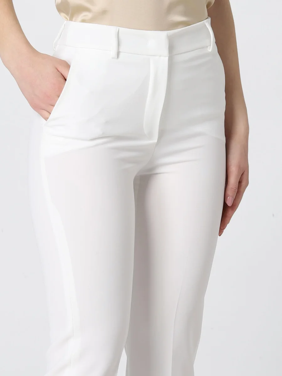 Pantalone Hanita, modello slim, chiusura con bottone centrale, passanti per cintura. Color panna