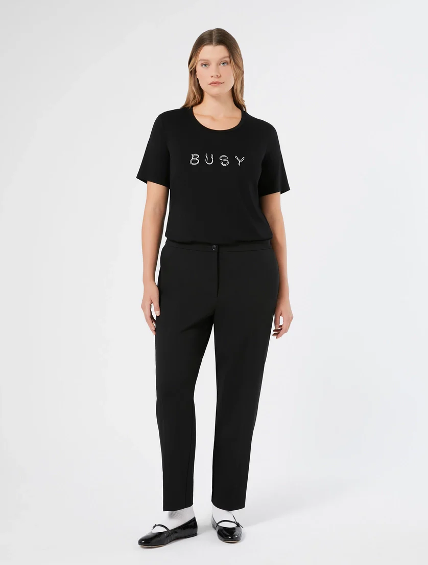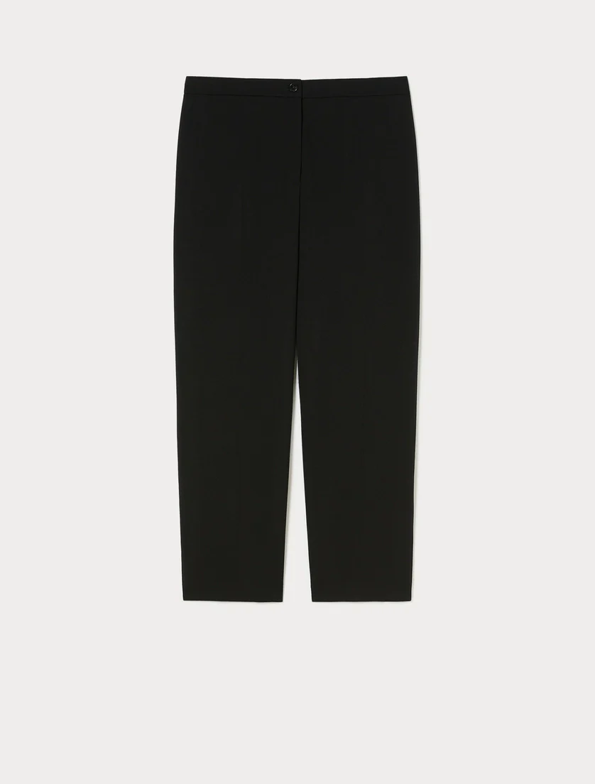 Pantalone Now Marina Rinaldi, modello in jersey scuba, linea slim, elastico in vita sul retro, chiusura con zip e bottone, colore nero