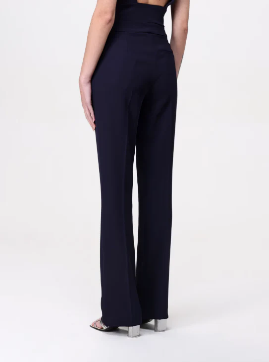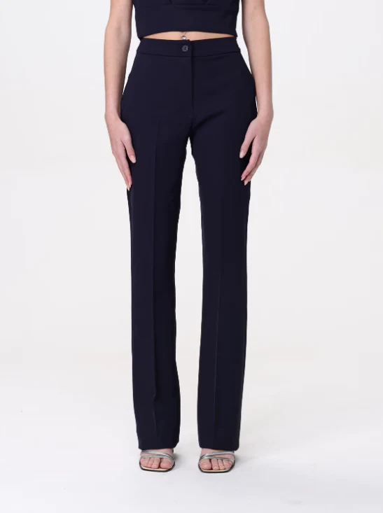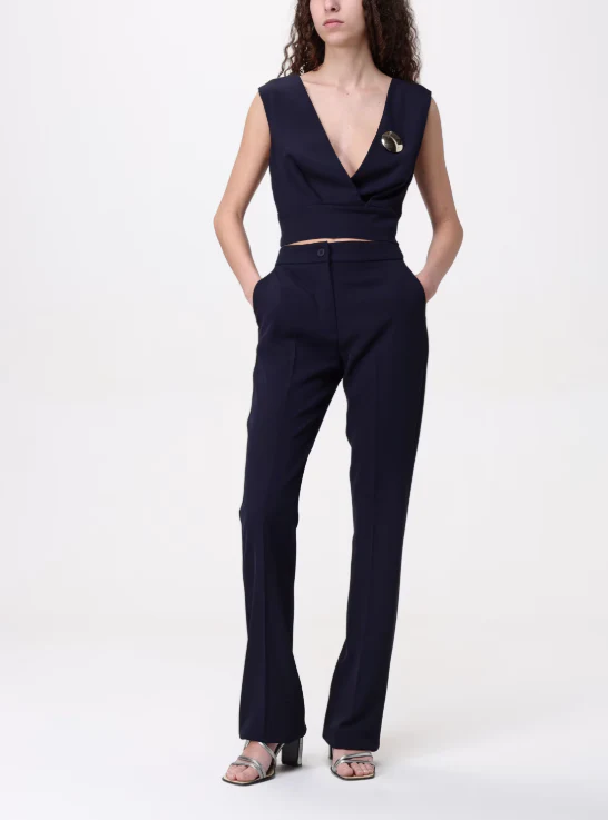 Pantalone Hanita donna, modello sartoriale, con bottone e zip a scomparsa, tasche america a filetto posteriore, vita alta, colore blu