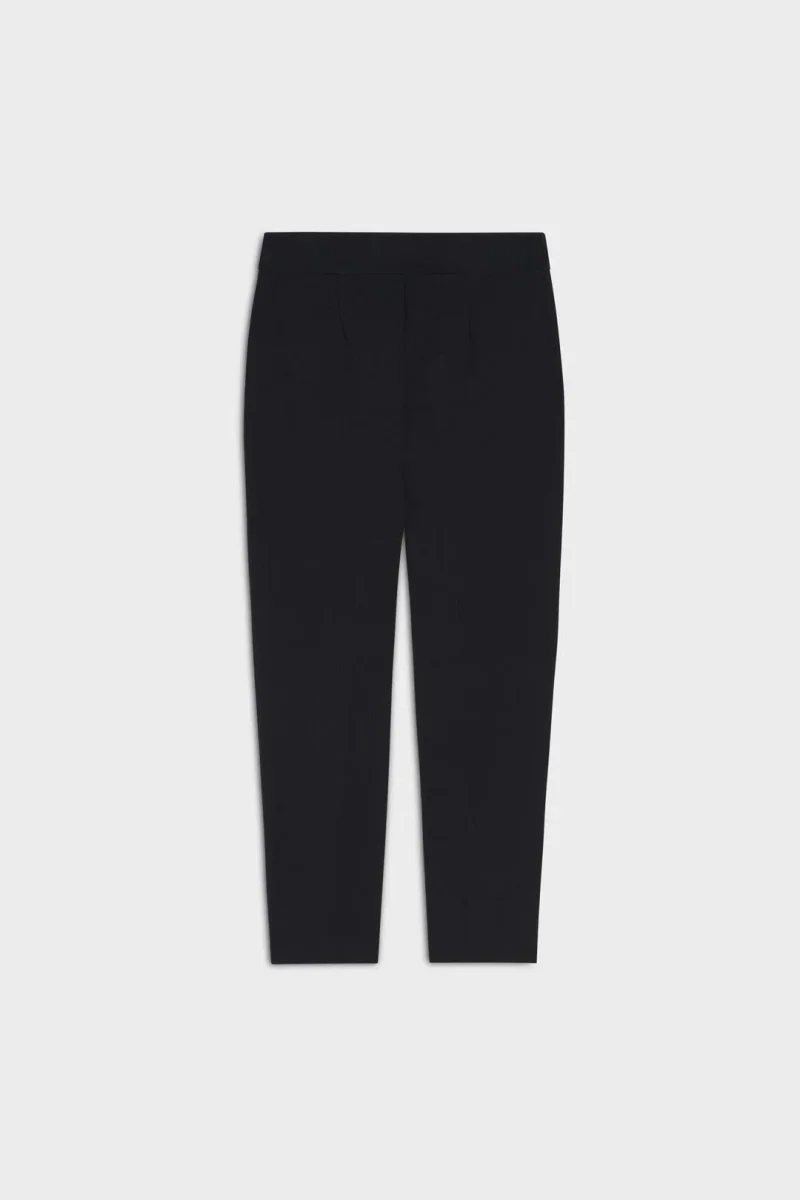 Pantaloni a sigaretta in crepe satin, con vita regolare e gamba aderente, chiusura con bottone madreperla, tasche alla francese e piega stirata, colore nero