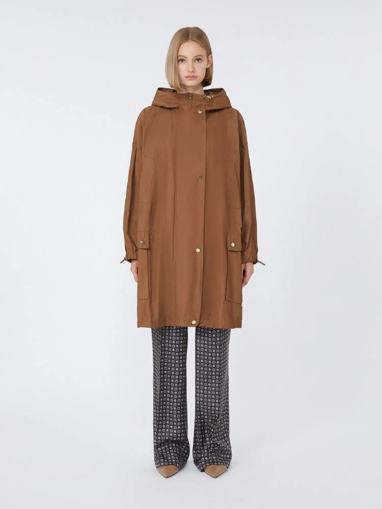 Parka corto Max Mara Studio, modello in faille di cotone e nylon, oversize con coulisse interna in vita sul retro, maniche lunghe, chiusura nascosta con zip e doppio cursore, tasche scaldamani