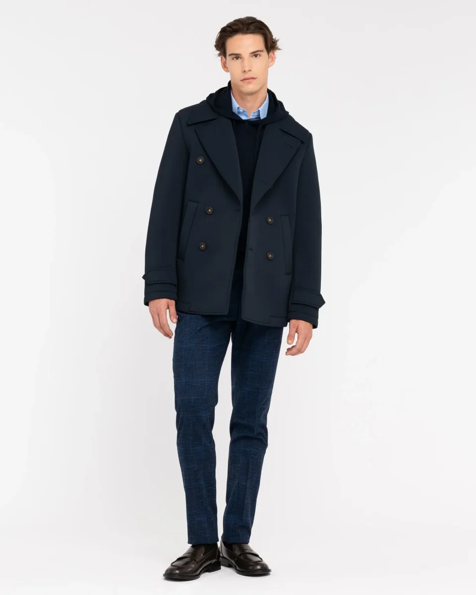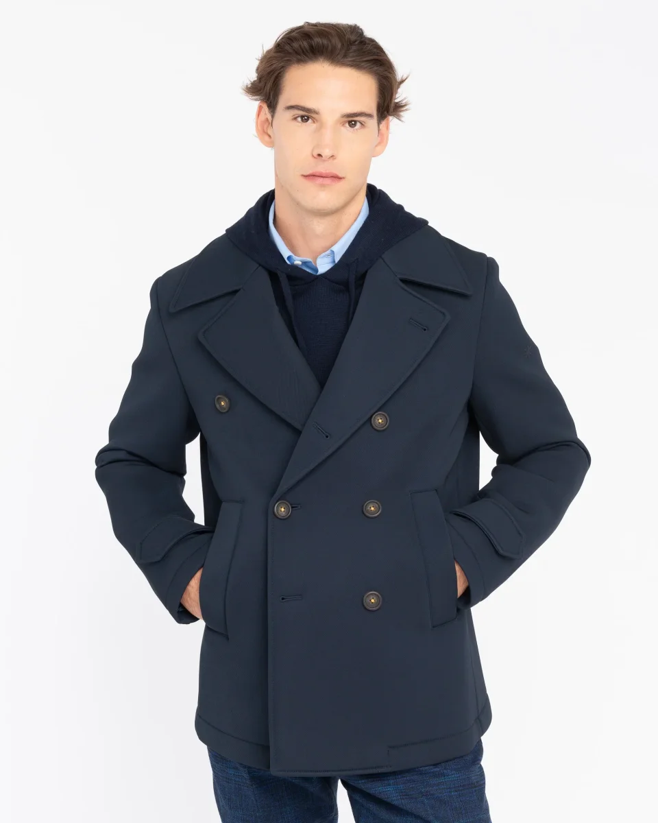 Peacoat Manuel Ritz uomo. Modello semifoderato, con chiusura bottoni, deu tasche frontali, spacco centrale sul retro, finiture con impunture, colore blu