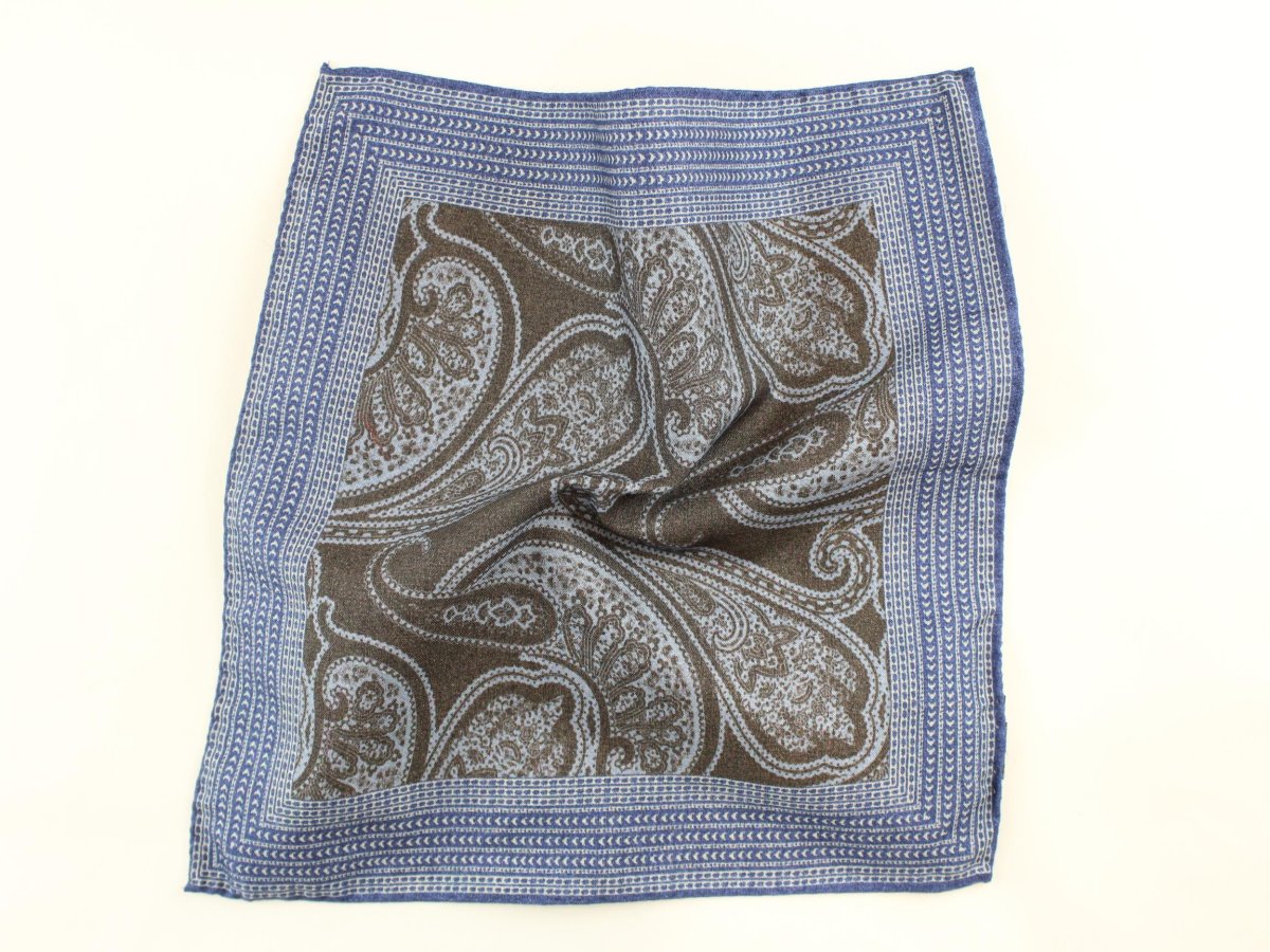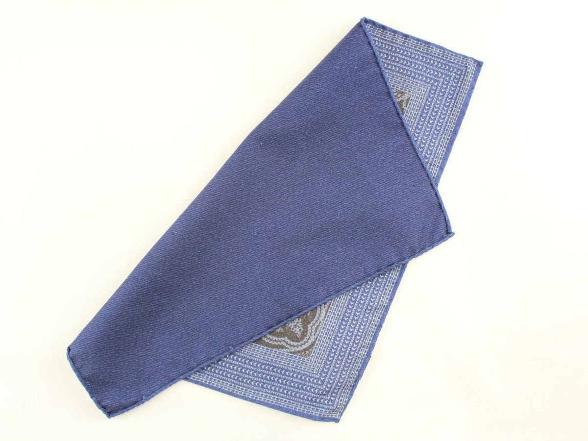 Pochette da taschino uomo Gierre Milano, modello double face. Da un lato fantasia in contrasto, dall’altro tinta unita blu