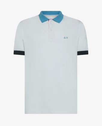 Polo 3 color way Sun68, colletto classico con bottoni e contrasto, logo ricamato sul petto in contrasto, colore bianco