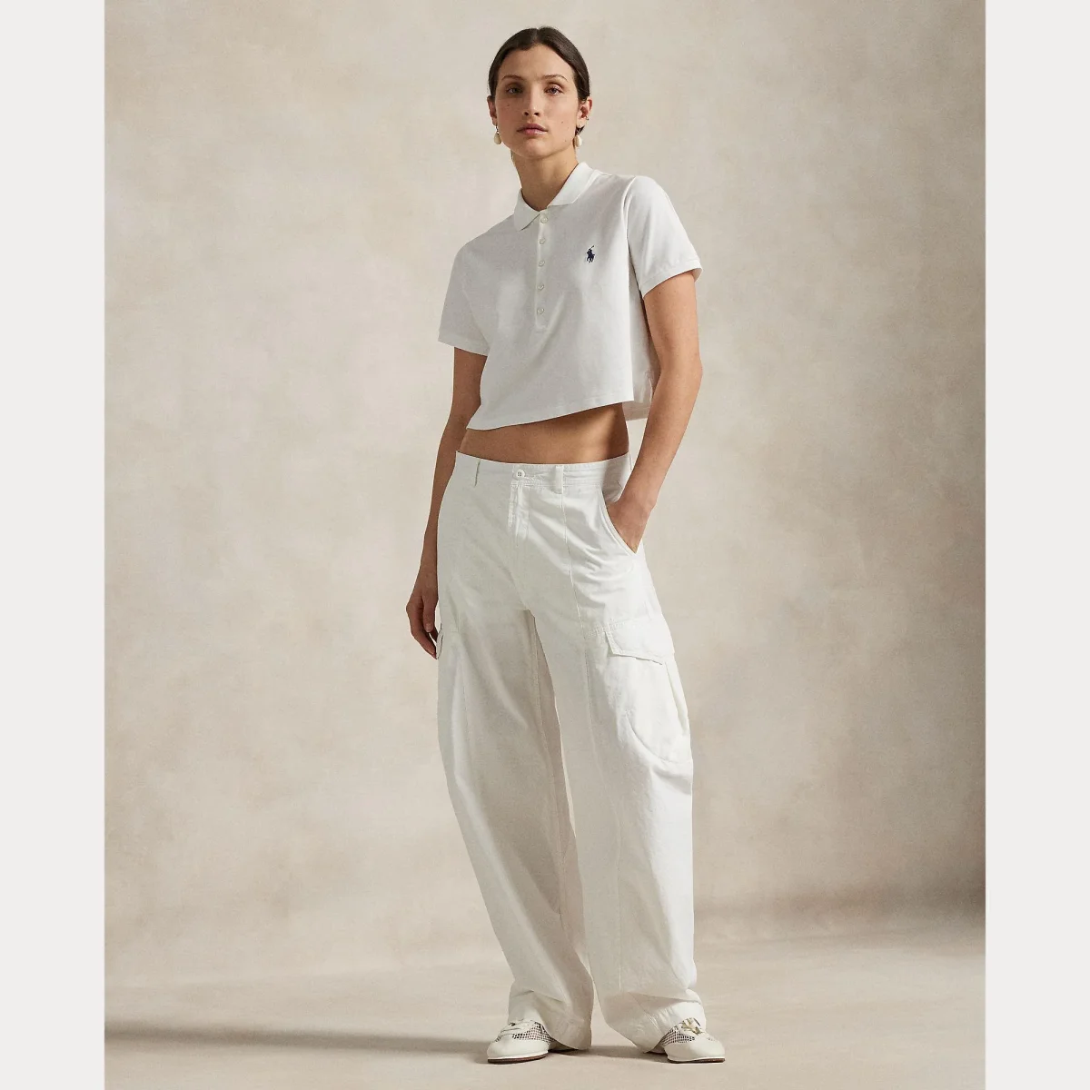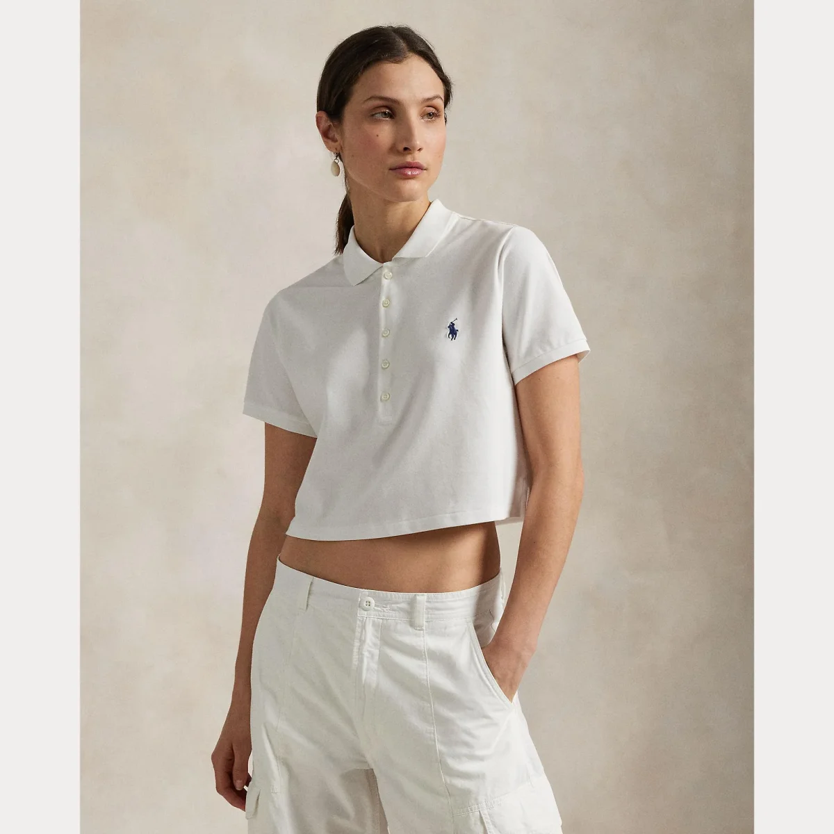 Polo cropped Ralph Lauren Polo, modello con collo a polo, maniche corte, dettaglio cavallino iconico ricamato, colore bianco