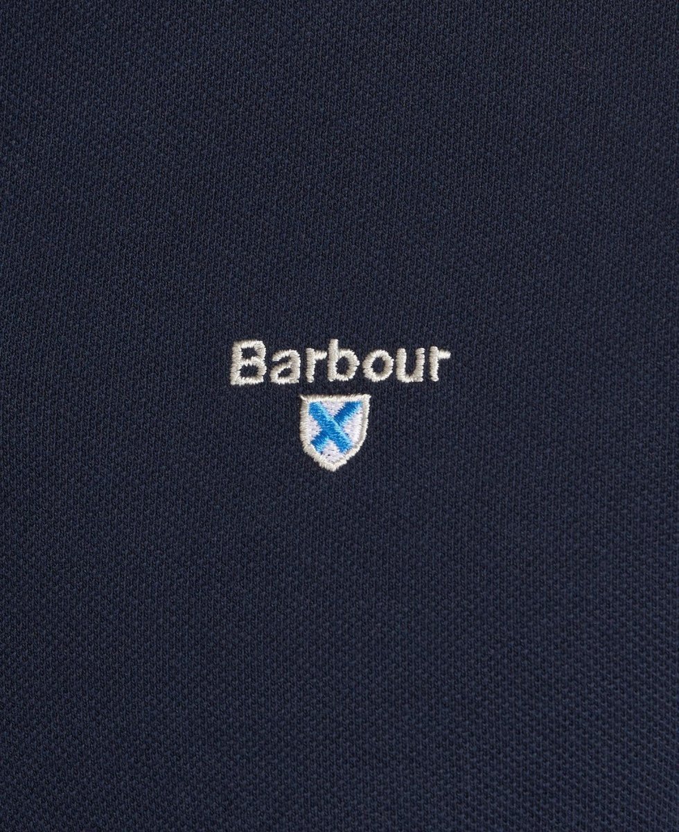 Polo in cotone Barbour, maniche corte, finiture tartan sul retro del collo e logo sul petto, colore blu