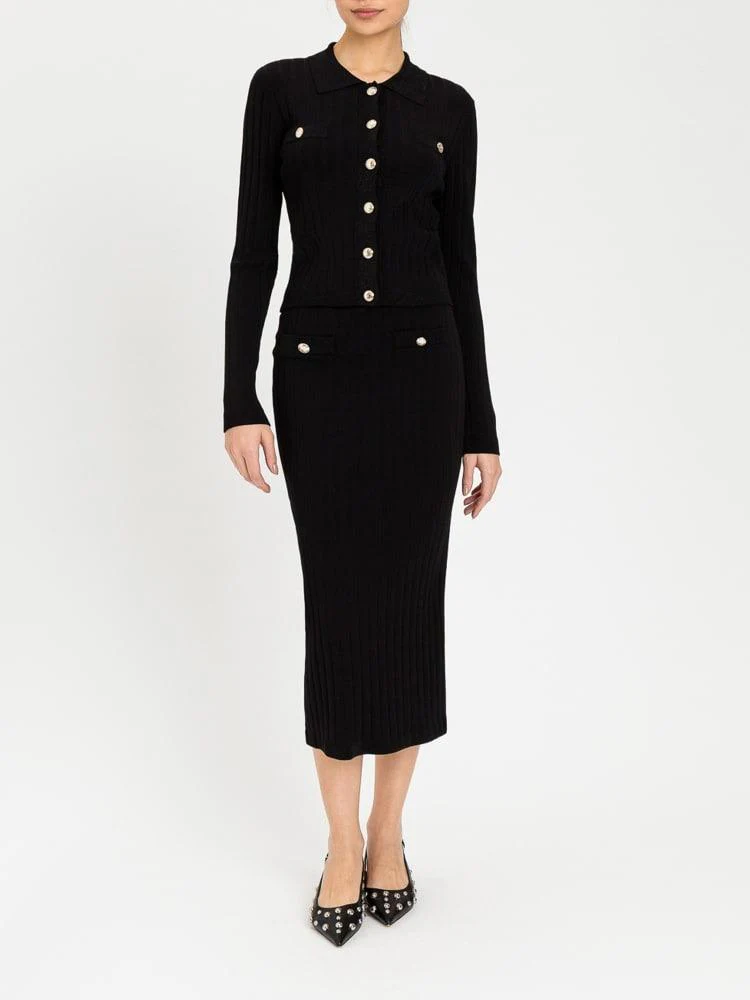 Polo in maglia Twinset Actitude, chiusura con bottoni metallici, tasche a fessura, collo a costine, colore nero
