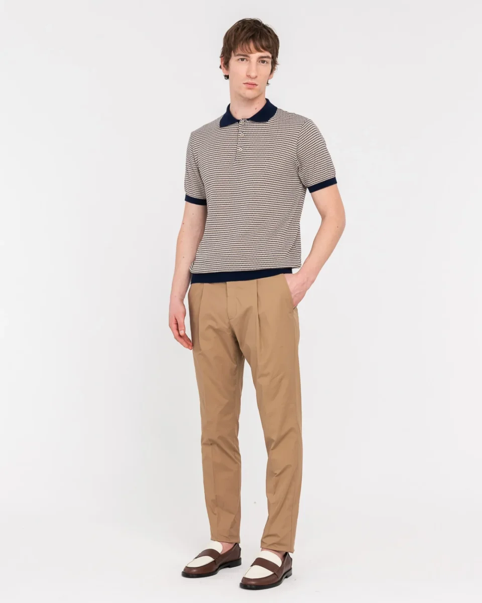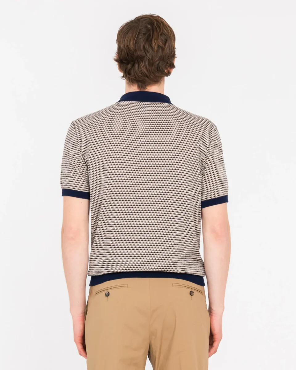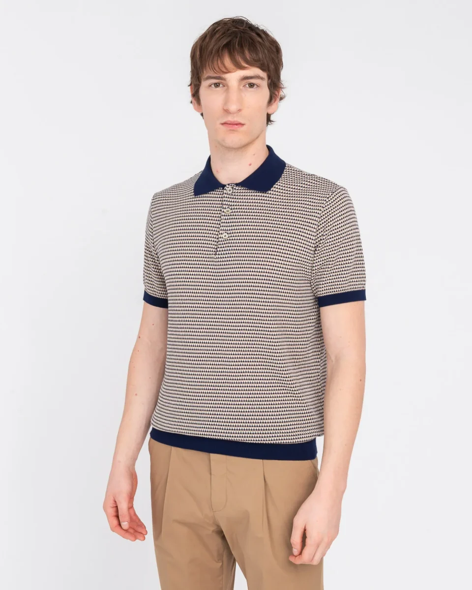 Polo jacquard uomo, modello con ricamo logo in tono, finitura a costine, realizzata in cotone