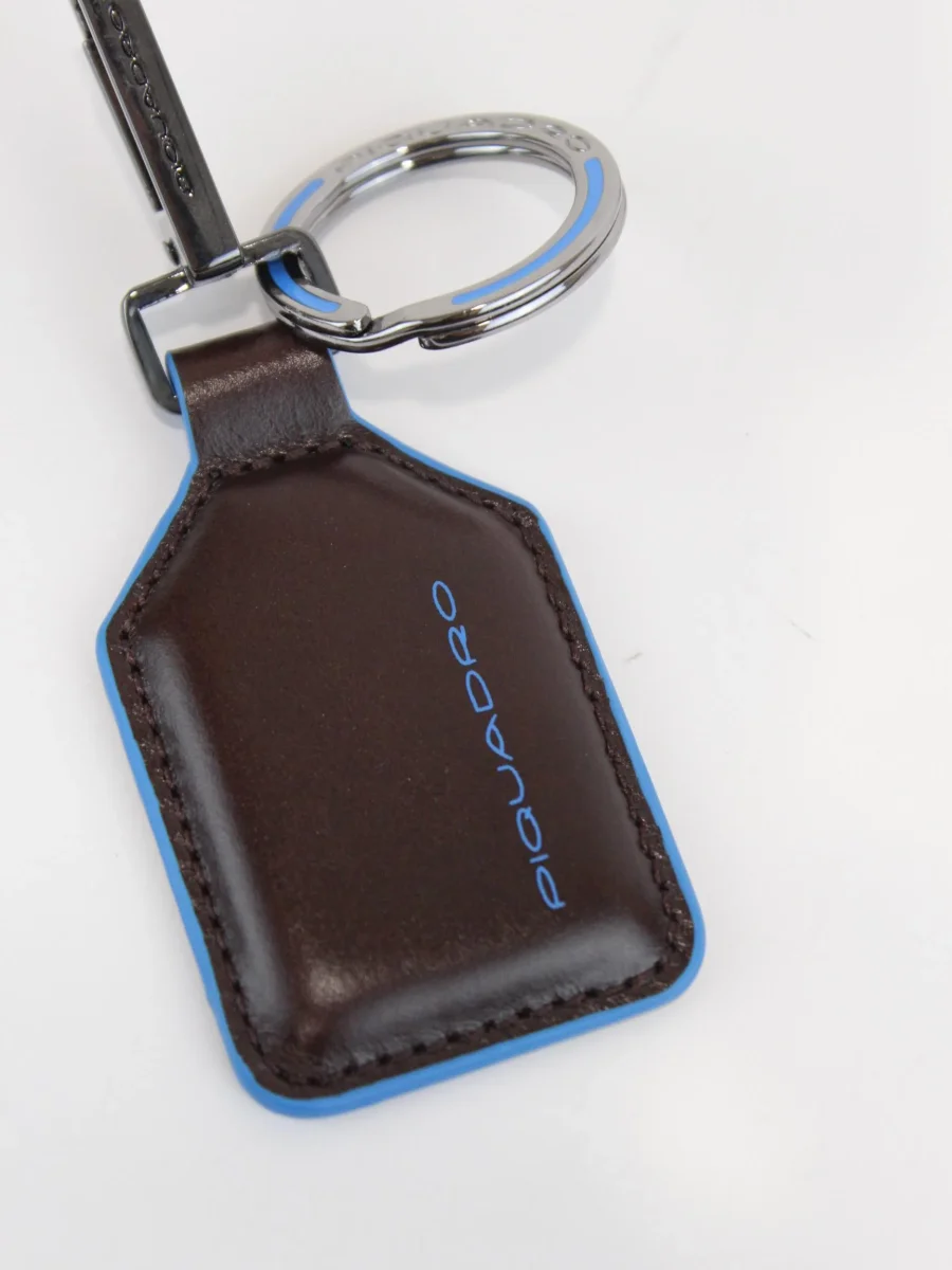 Portachiavi Piquadro, modello con doppio inserto uno ad anello uno moschettone, logo in contrasto, colore mogano