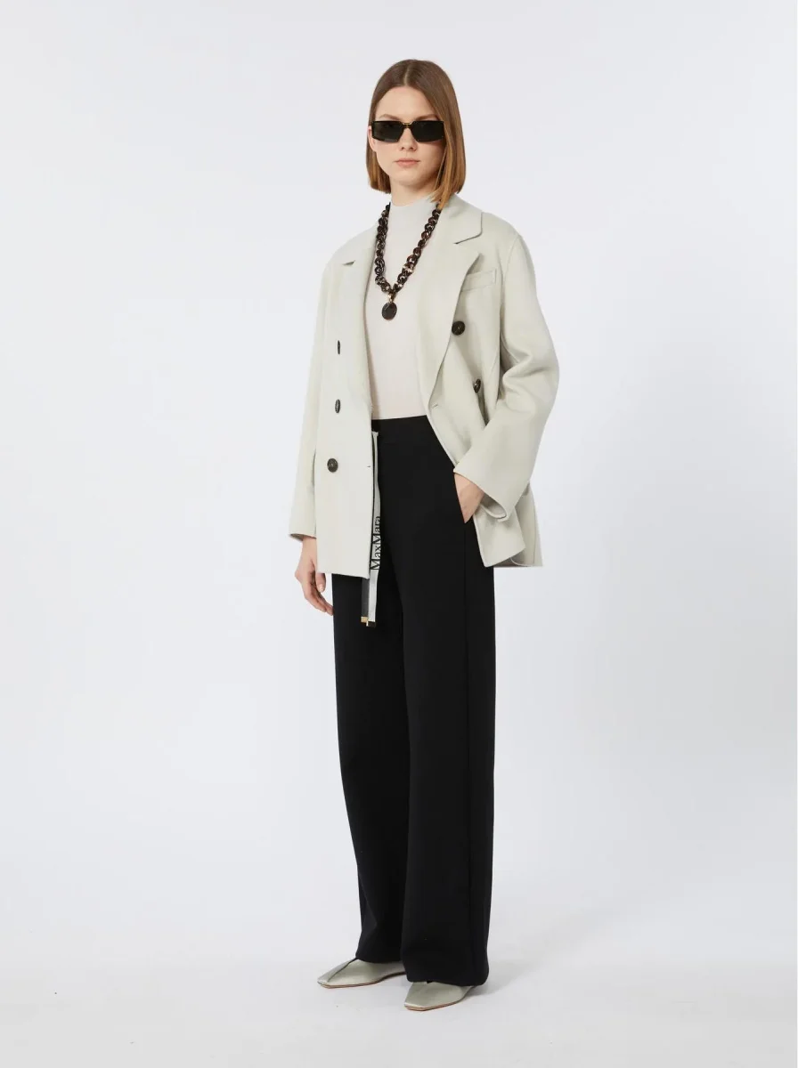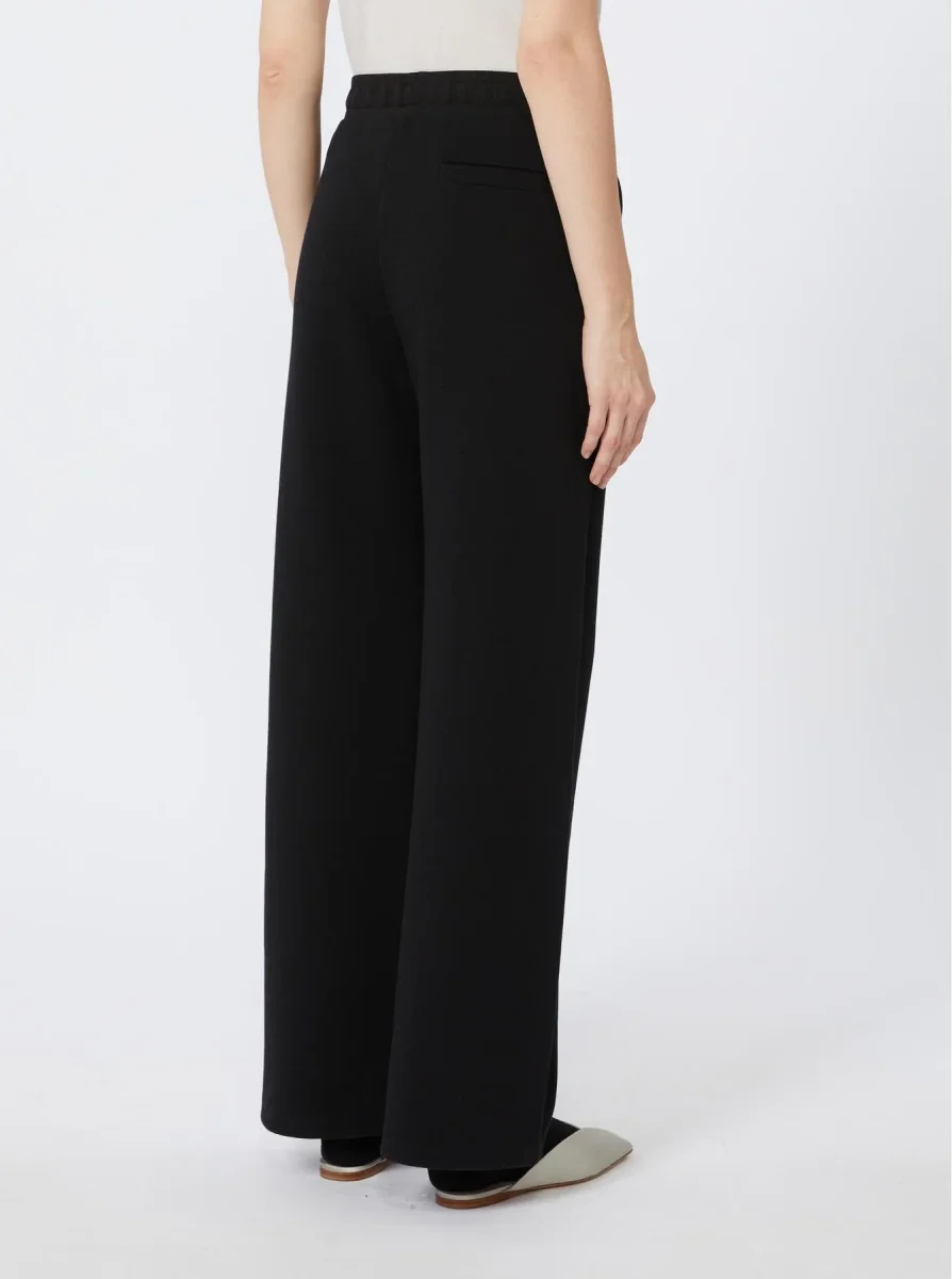 Pantalone a coulisse in jersey di cotone, vita elasticizzata, tasche inserite nei fianchi, taschino a filetto sul retro, nastri logati, colore bianco
