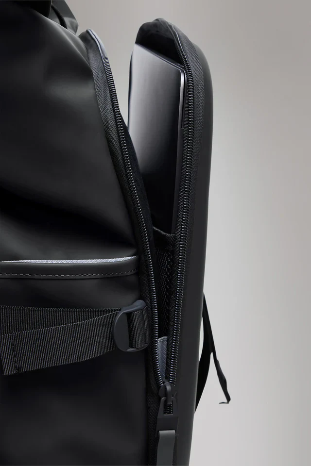 Zaino Texel Moulded Backpack impermeabile, dotato di tasca anteriore rigida, con fodera morbida e scomparto interno, entrambi adatti a laptop 16″, apposito manicotto per trolley, colore nero