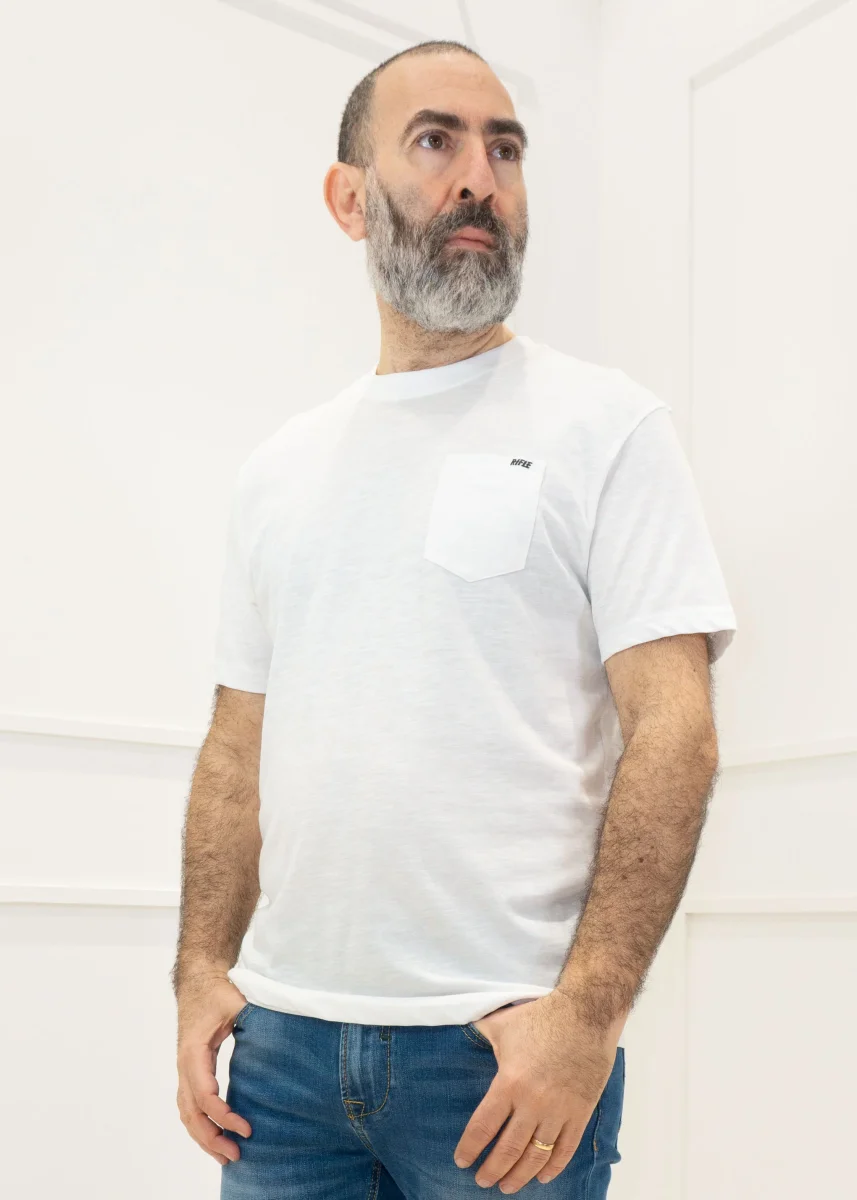 Descrizione: T-shirt girocollo e maniche corte. Dettaglio taschino ricamo Rifle.