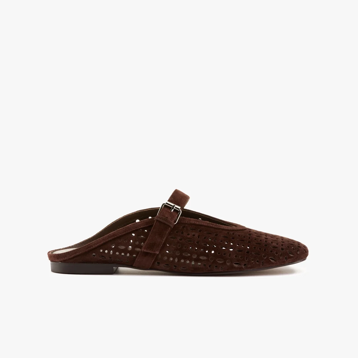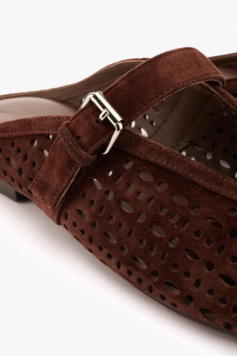 Sabot in camoscio testa moro traforato con cinturino