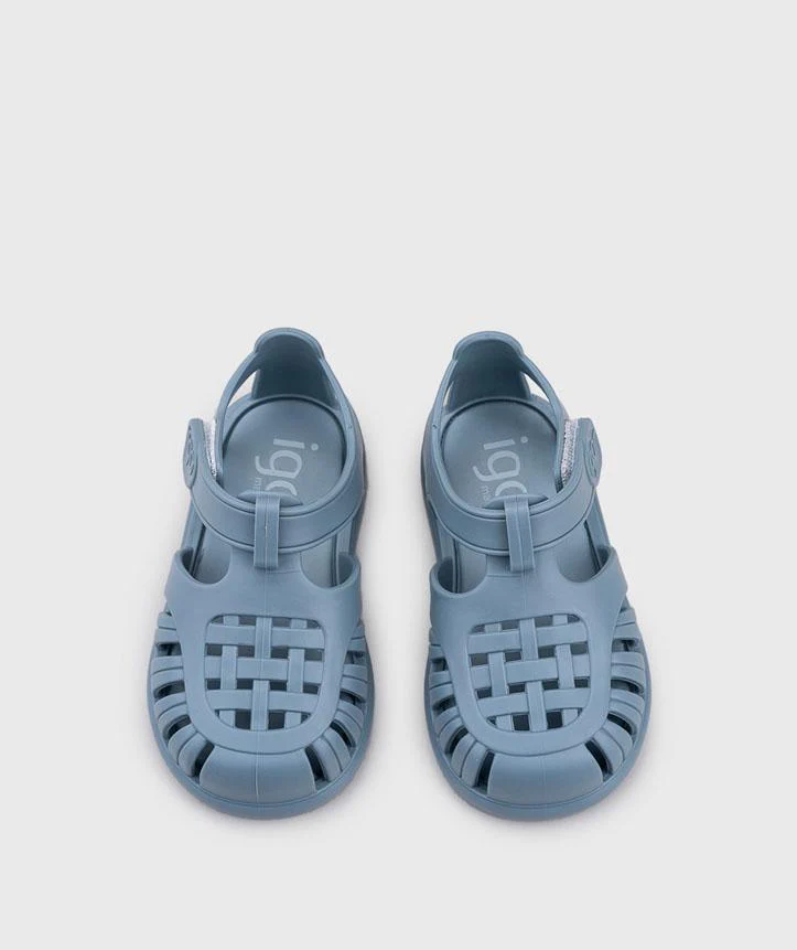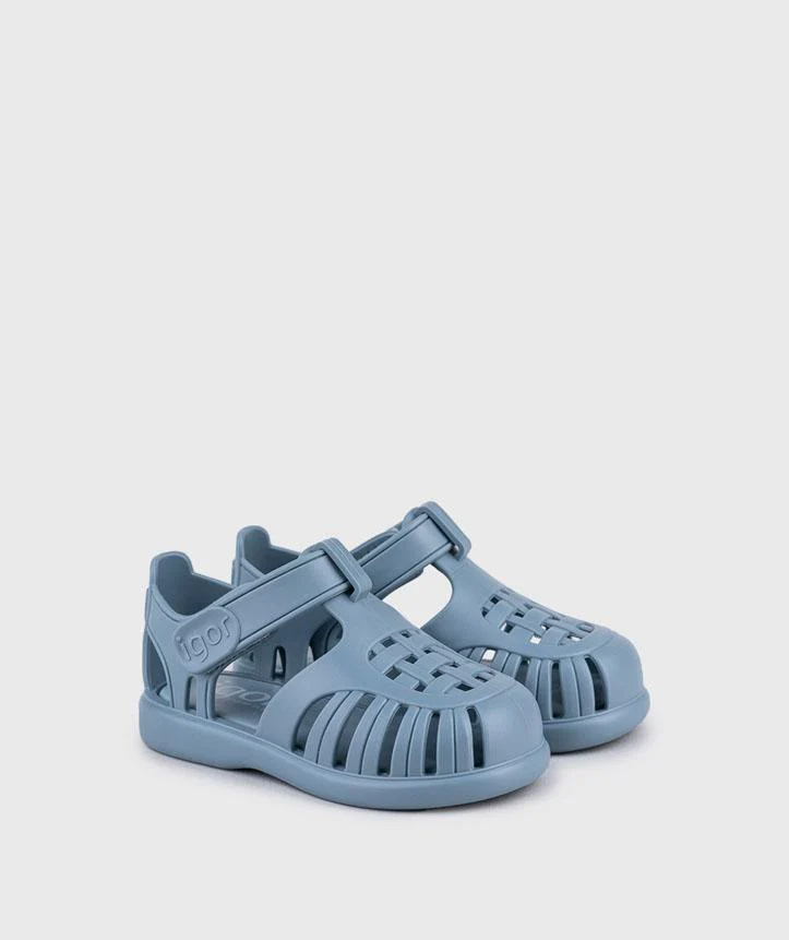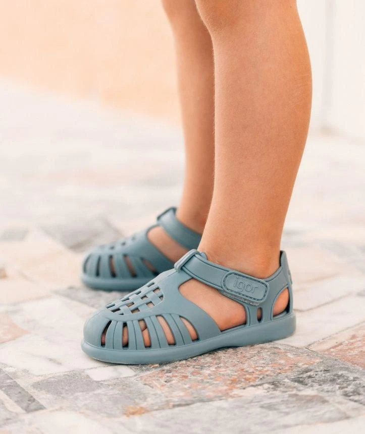Sandalo a strappo Igor bimbo, modello in tinta unita con finitura lucida e chiusura a strappo, colore blu oceano