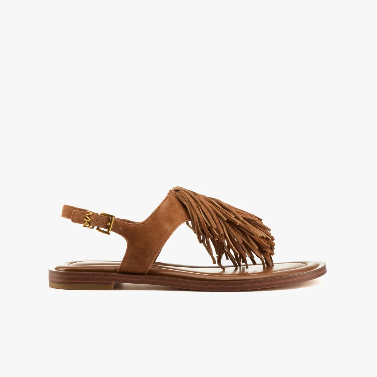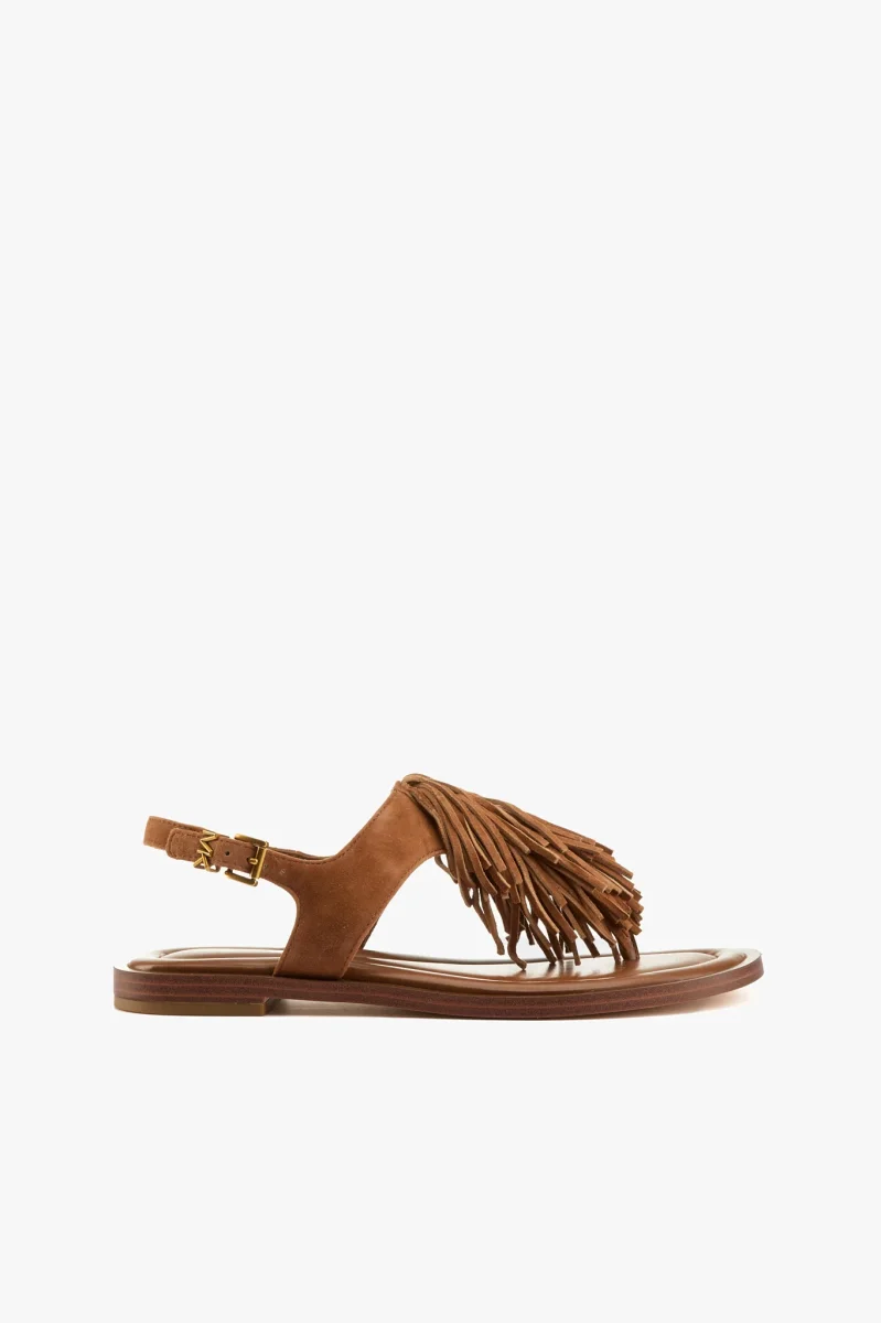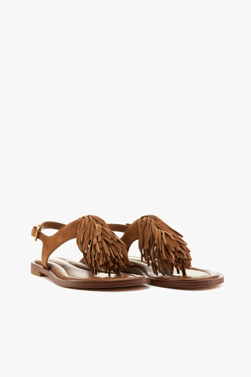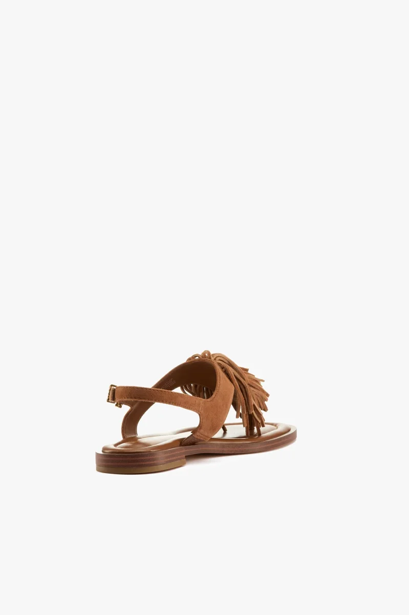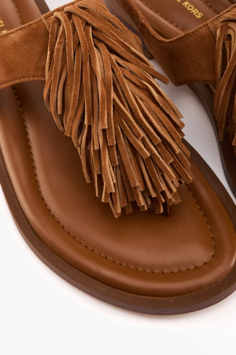 Sandalo infradito in camoscio cuoio con frange