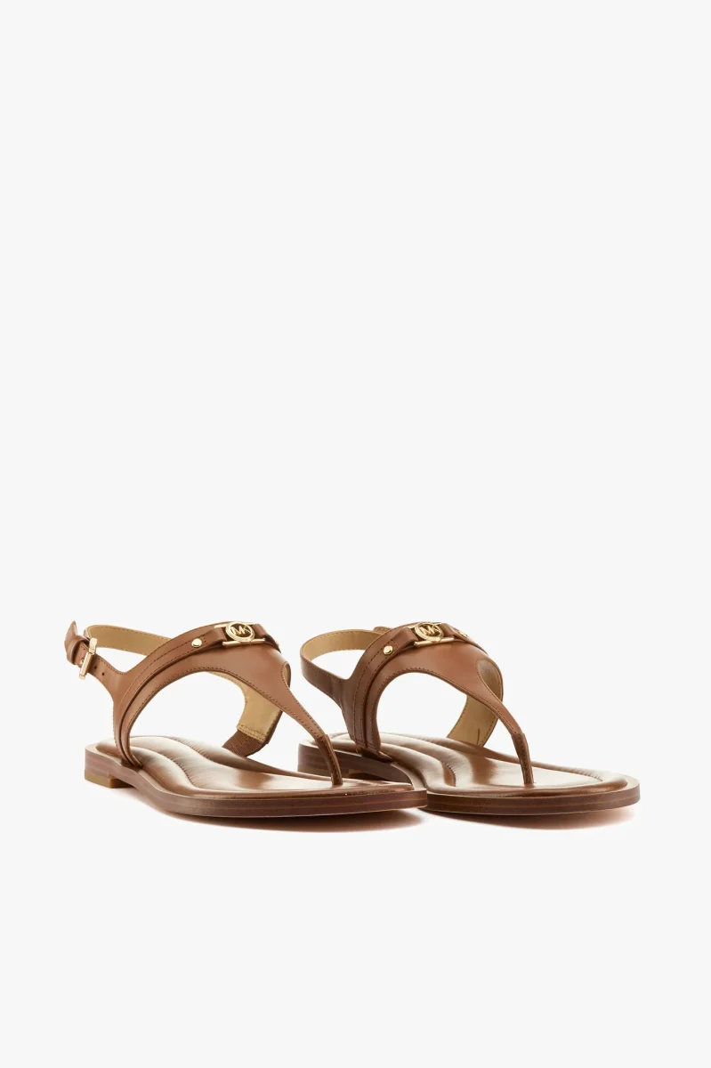 Sandalo infradito in pelle cuoio con dettaglio logo