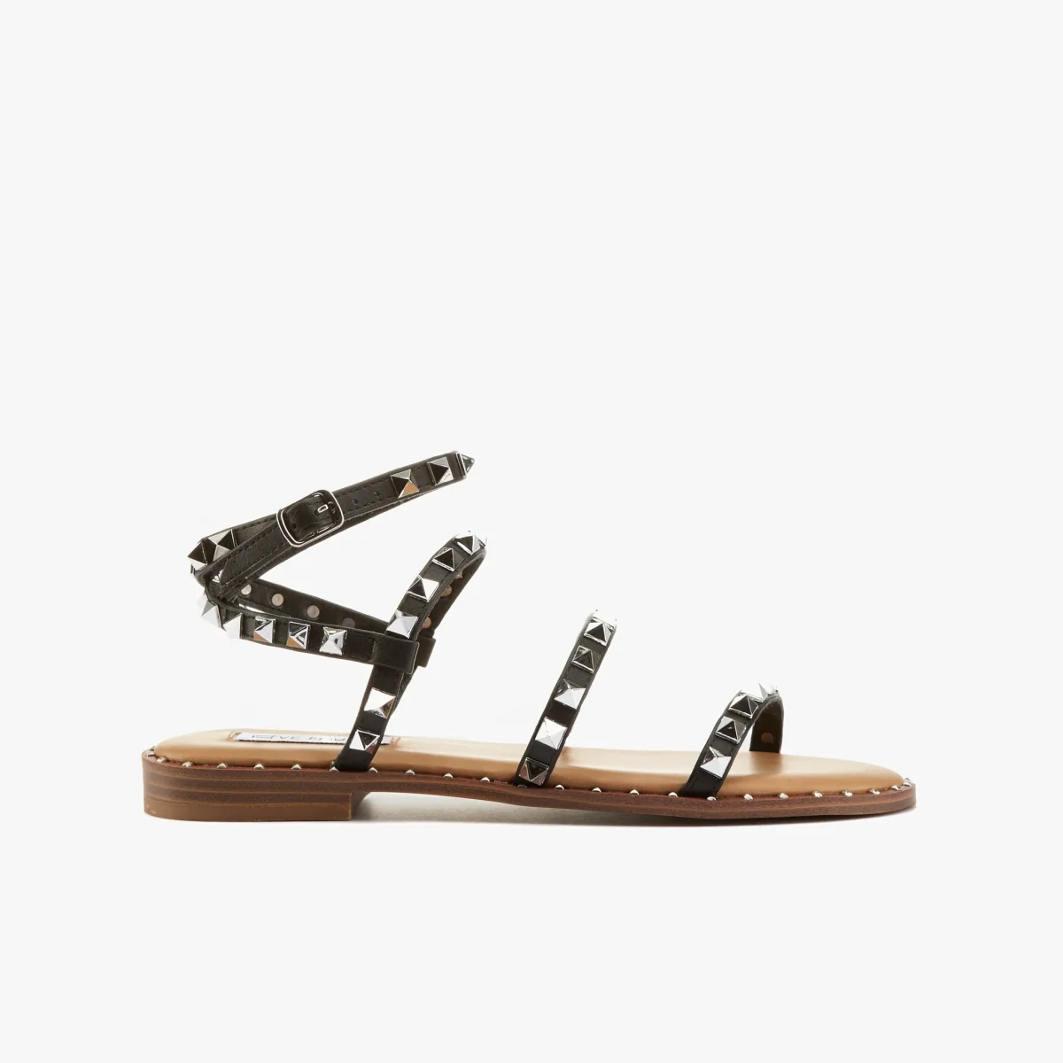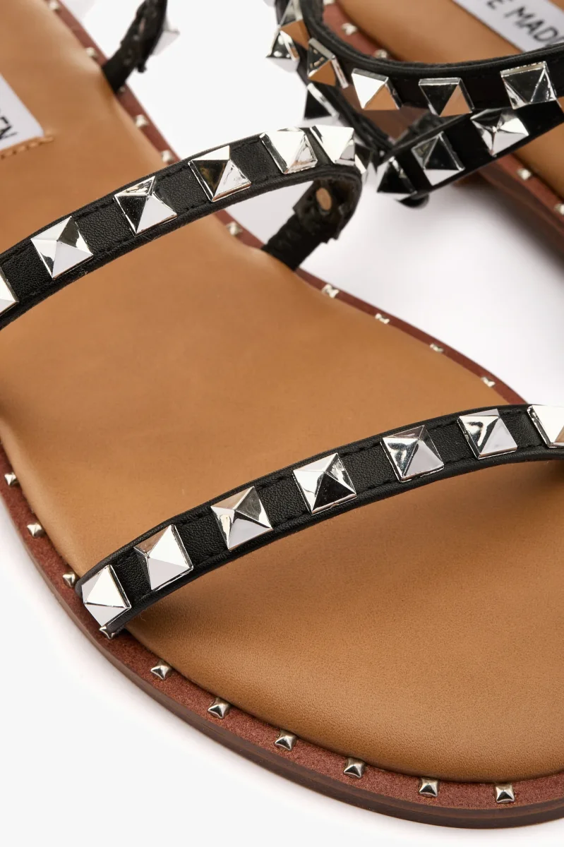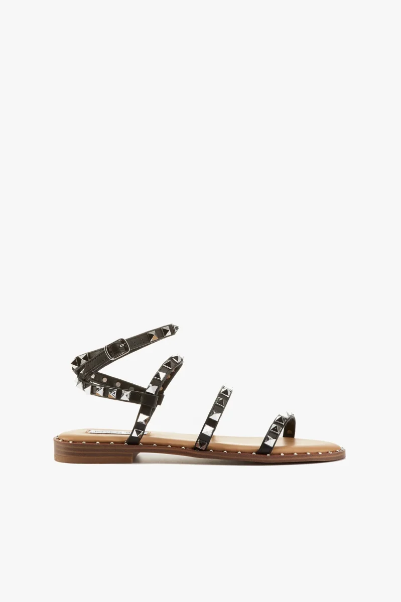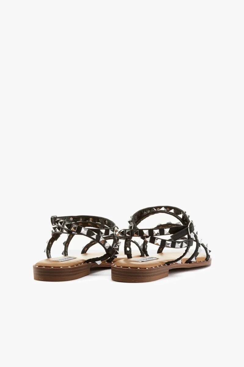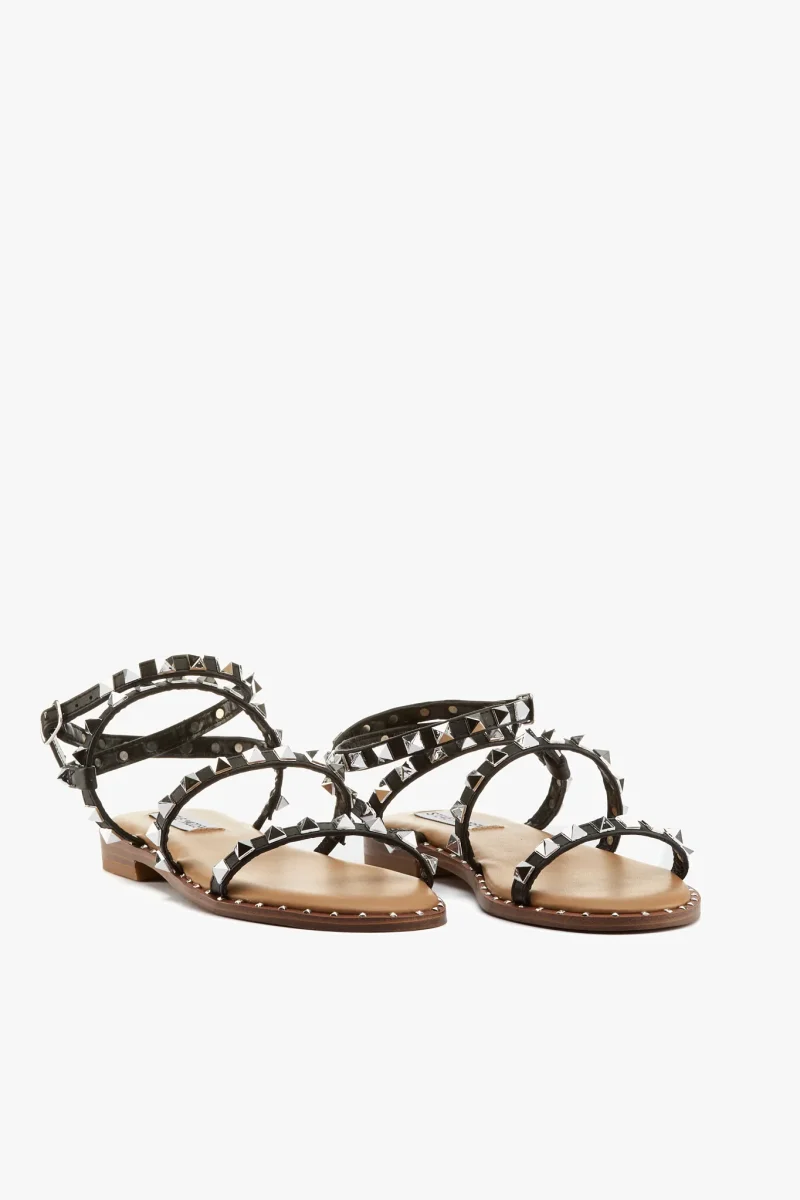 Sandalo in pelle vegetale nero con borchie color argento