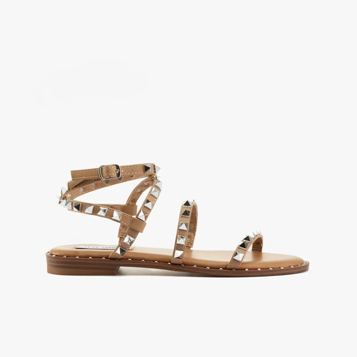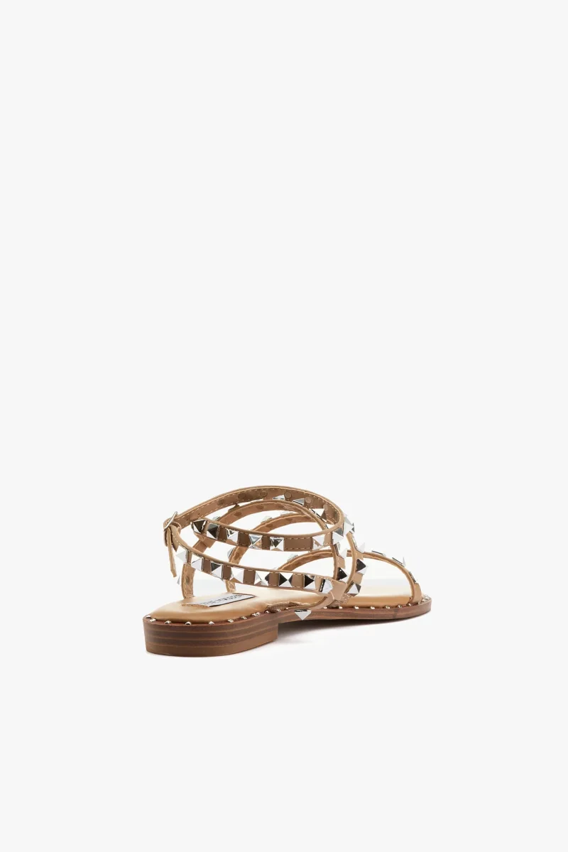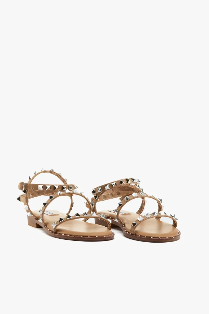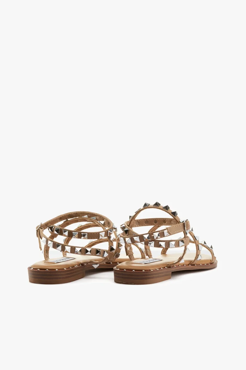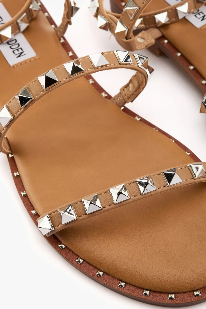 Sandalo in pelle vegetale cuoio con borchie color argento