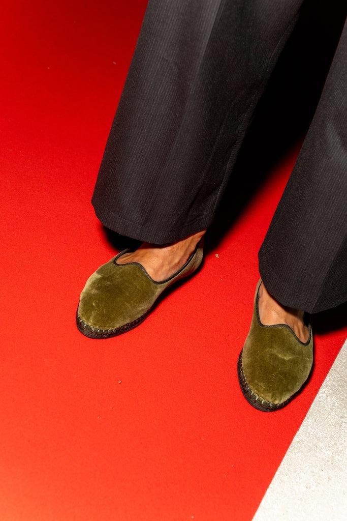 Scarpa bassa Flabelus uomo, modello realizzato in velluto di cotone, suola realizzata in gomma, colore verde