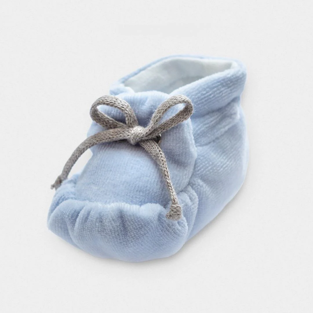 Scarpine La Sartoria dei Piccoli, in calda ciniglia azzurra con laccetto a contrasto