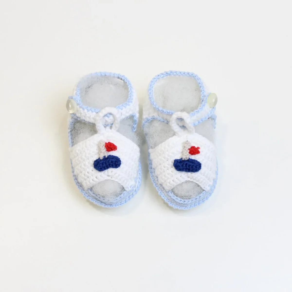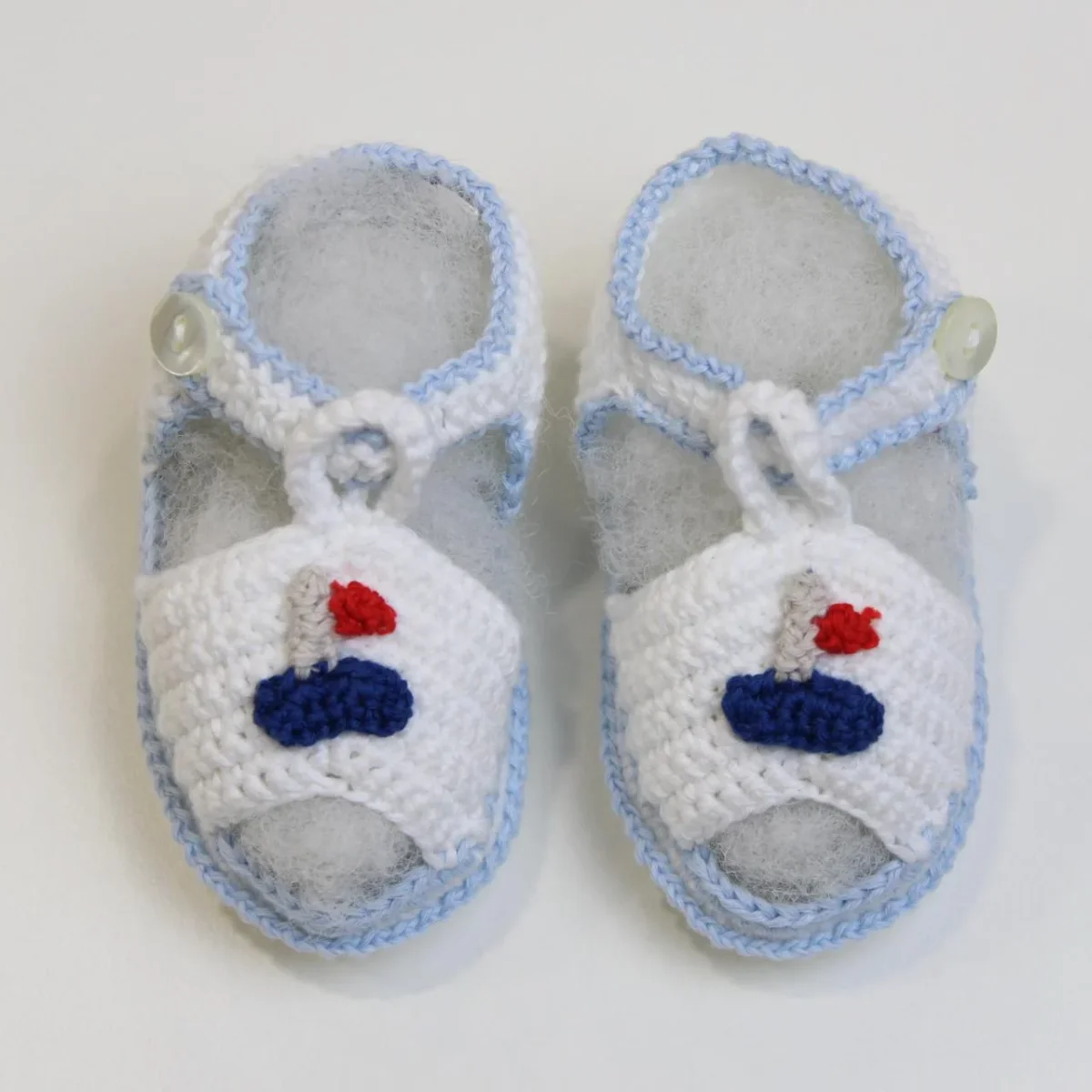 Scarpina neonato Piccola Giuggiola, in cotone, dettagli ricamati in contrasto e chiusura con bottoncini laterali.