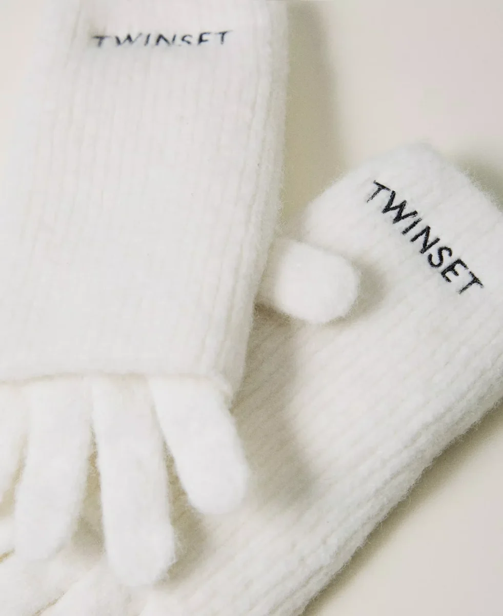 Set Twinset Girl, modello con manicotti corti senza dita a costine con ricamo logo lettering, colore bianco