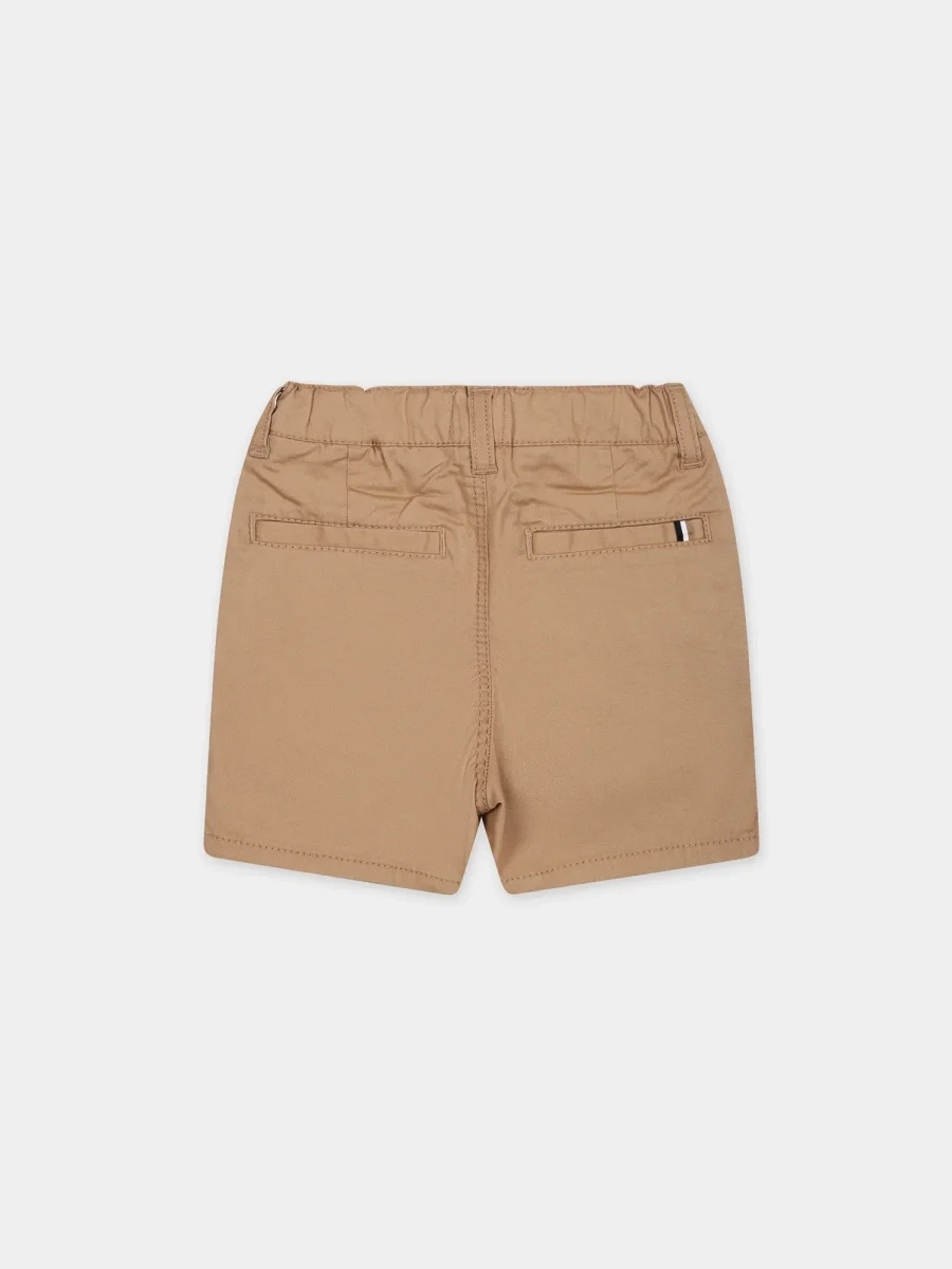Shorts Boss Kidswear neonato, modello basic con chiusura bottoncino, passanti in vita, color cammello