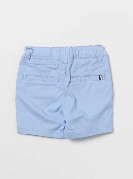 Shorts Boss Kidswear neonato, modello basic con chiusura bottoncino, passanti in vita, color azzurro